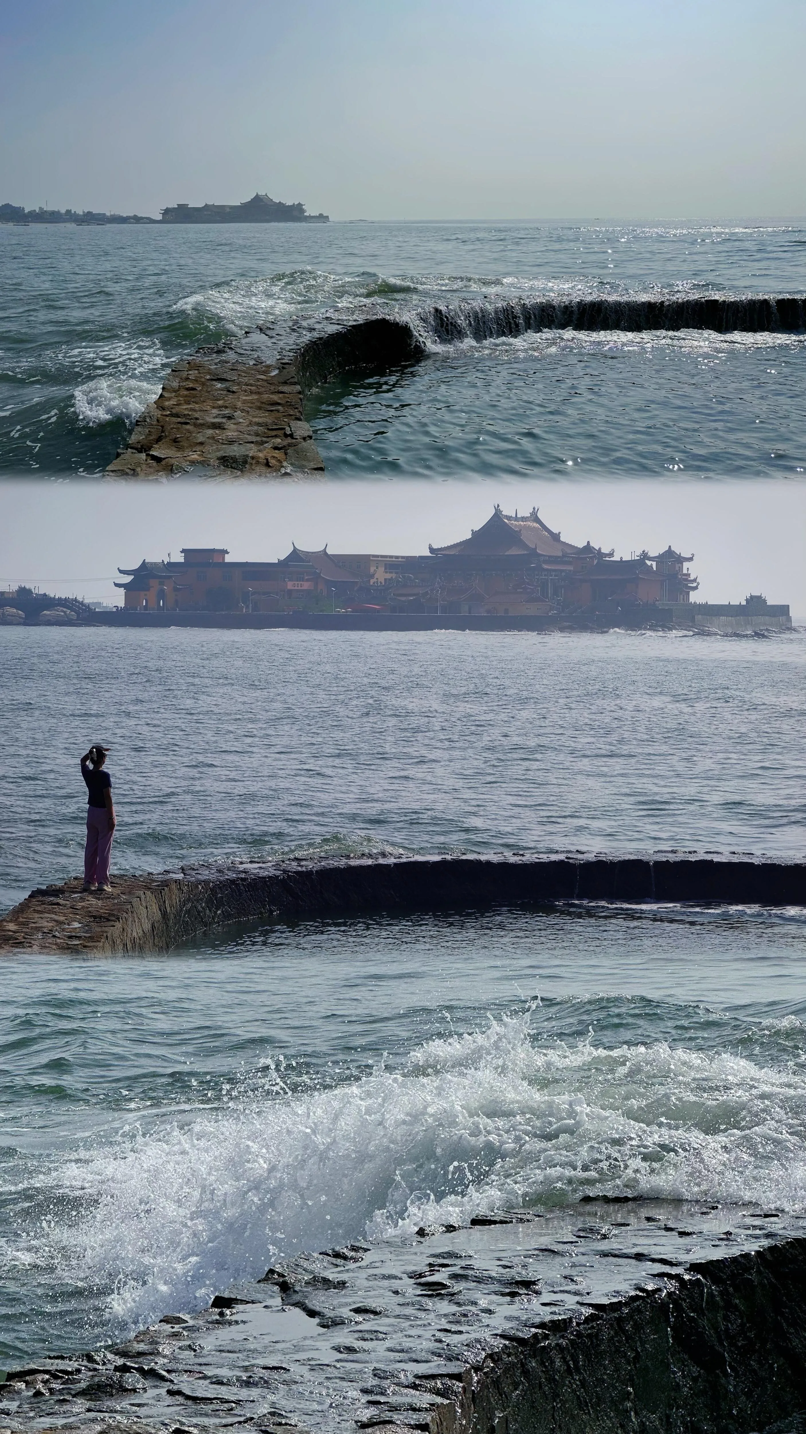 这次泉州一日一夜的旅程虽然短暂,却精彩纷呈。 由于泉州站车票售罄,选择了较为偏僻的南站,直奔石狮海边民宿。次日清晨五点,虽因雾气未能欣赏到日出,但幸运地目睹了涨潮时分的海中寺院景象。骑着小电驴沿海岸线悠闲穿行,亲眼见证了传说中的“果冻海”美景。中午北上,开启了泉州古城的探索之旅。