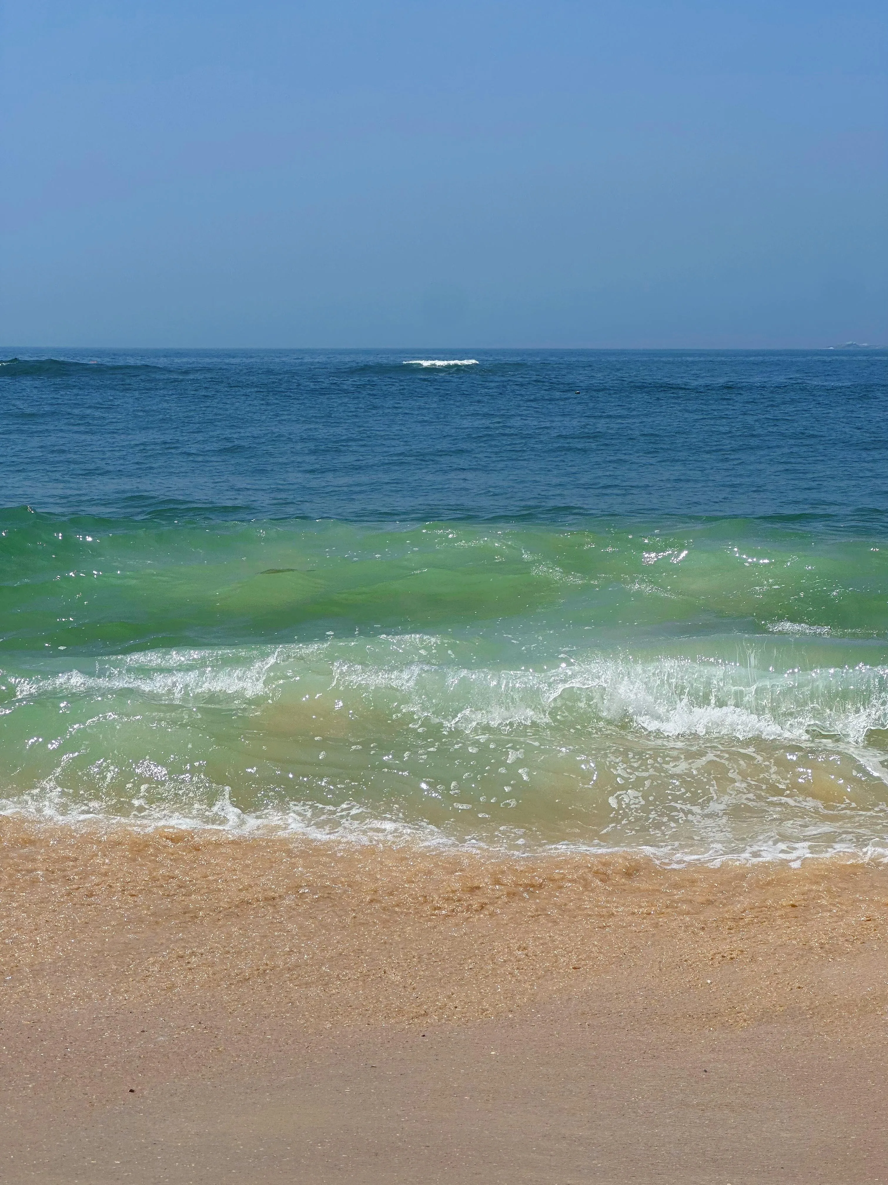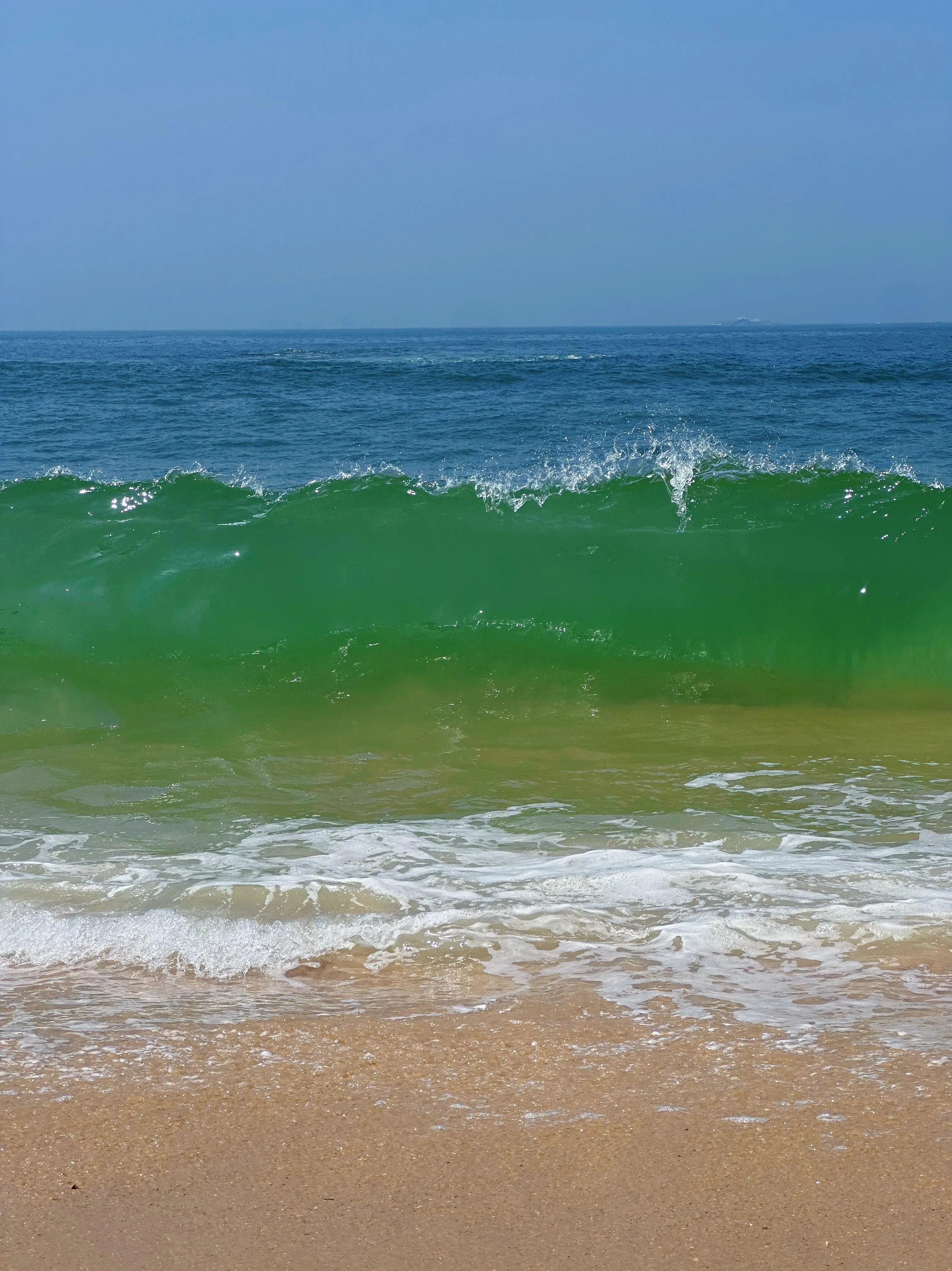 石狮浅水滩的天然果冻海是一处令人惊叹的自然景观。 海水清澈翠绿,肉眼可见,无需添加滤镜就能呈现出令人心醉的美景。上午时分,游客稀少,沙滩干净整洁,为游览体验增添了不少分。