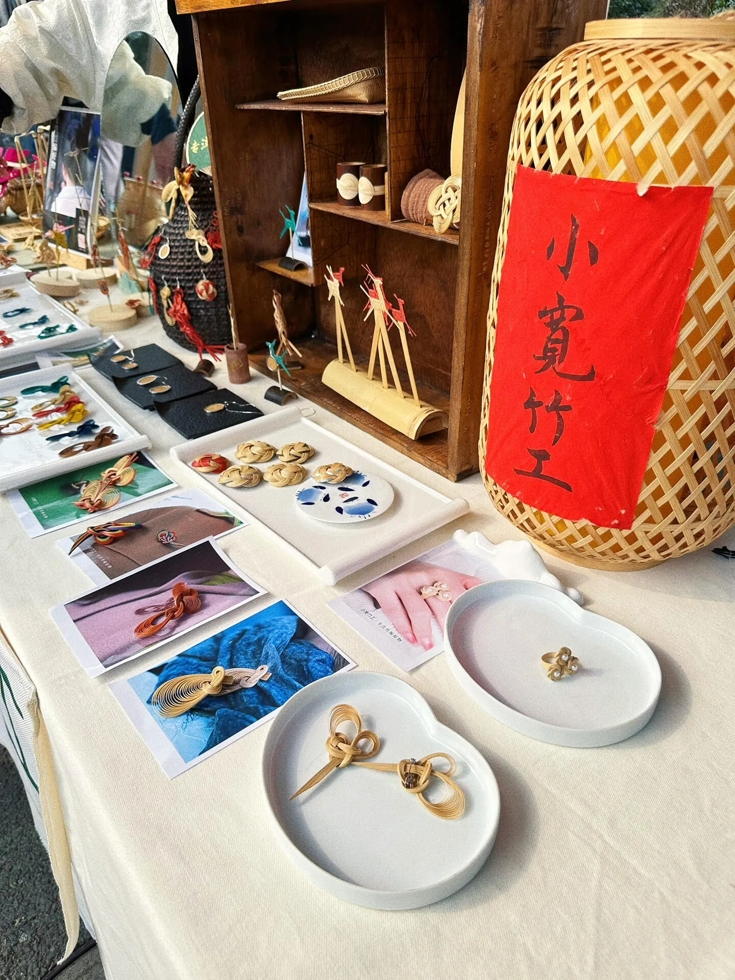 市集上还有许多原创小物,如手工竹编制品、扎染服饰、发夹、耳饰等。逛累了可以在路边的小椅子上歇歇脚,晒晒太阳,喝喝茶,聊聊天。