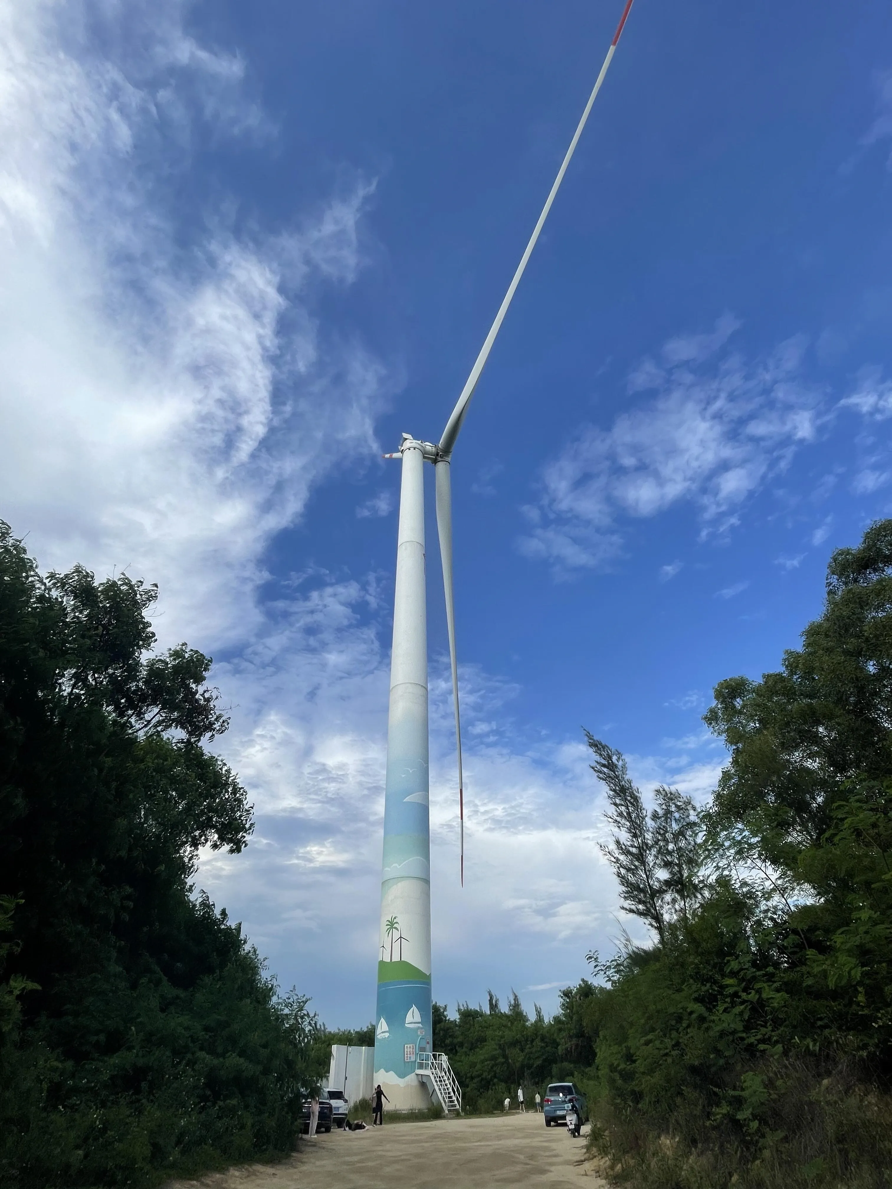 因天气变化,临时更改目的地到风车岛的浅水湾。这里可以近距离观赏巨大的风车,还有海上木栈道供游客拍照。虽然人很多,但在沙滩上玩沙、喝着鸭屎香柠檬茶乘凉看风景也是一种享受。
