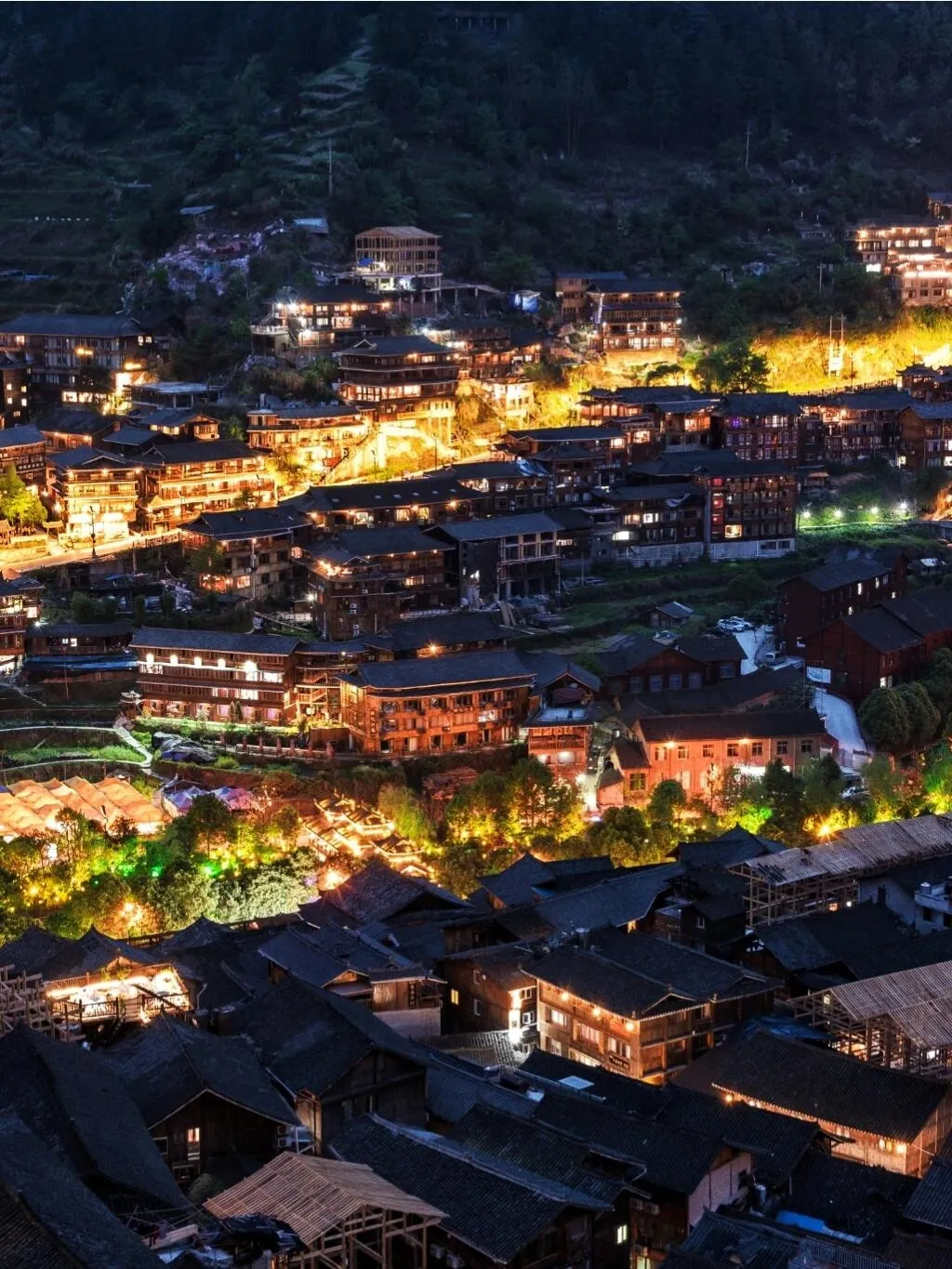 夜晚的西江千户苗寨,像是星辰散落人间,遗世独立又不失烟火气,让人舍不得离开。这里的美景和文化体验,绝对值得一游。