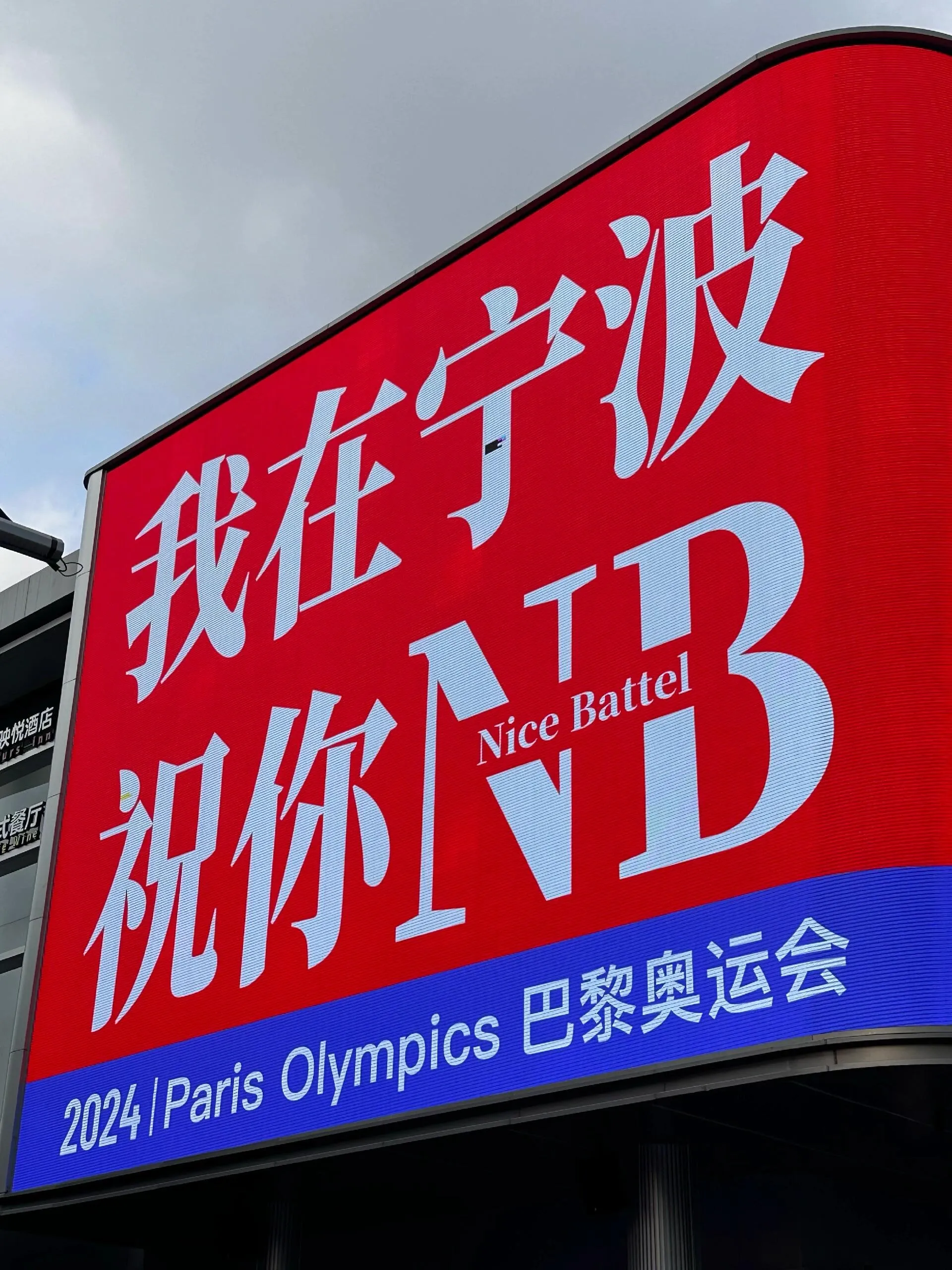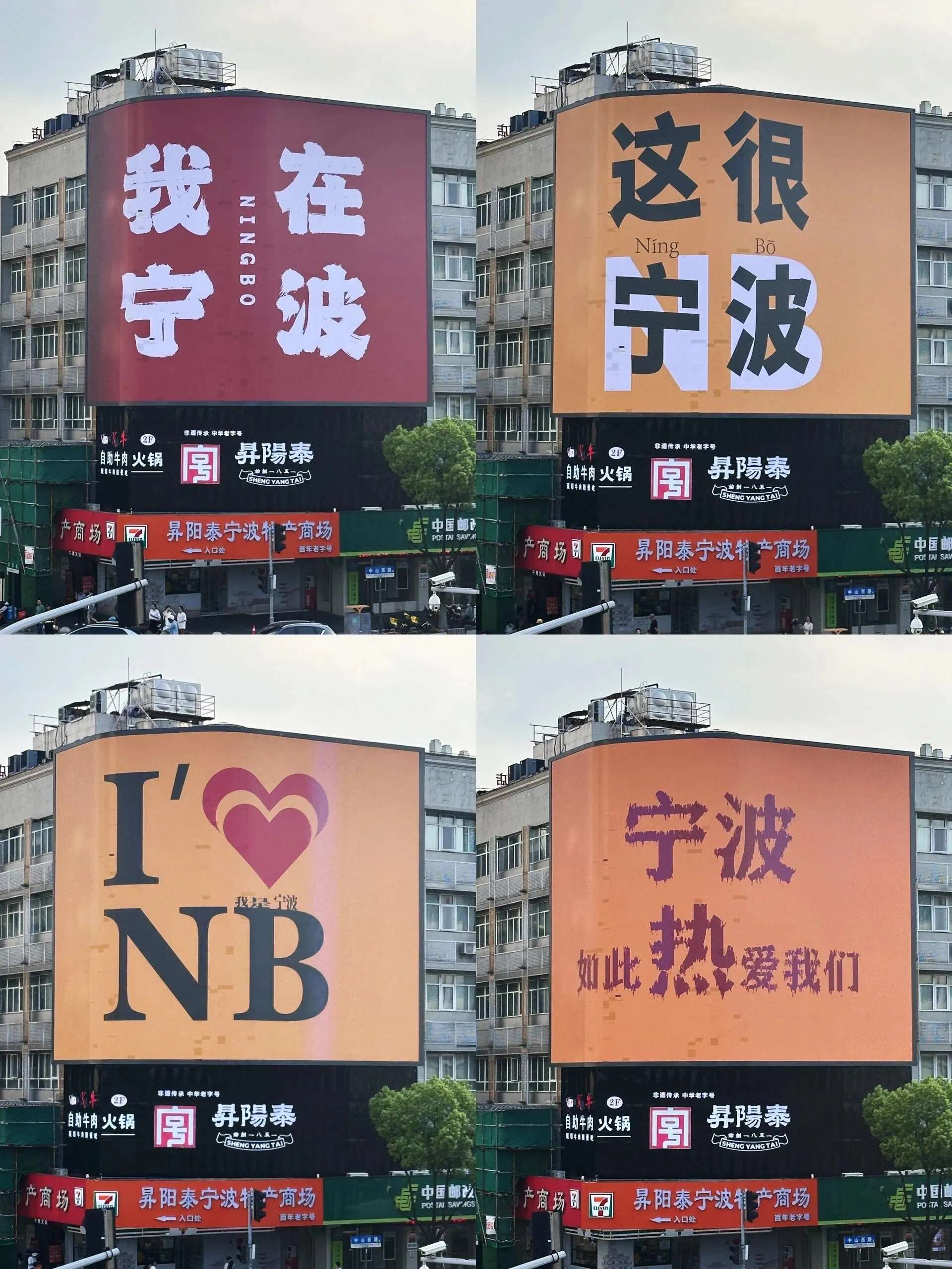 在鼓楼对面,有一个大屏幕会间隔播放关于“宁波”的标语 ,需要登上鼓楼才能看到。