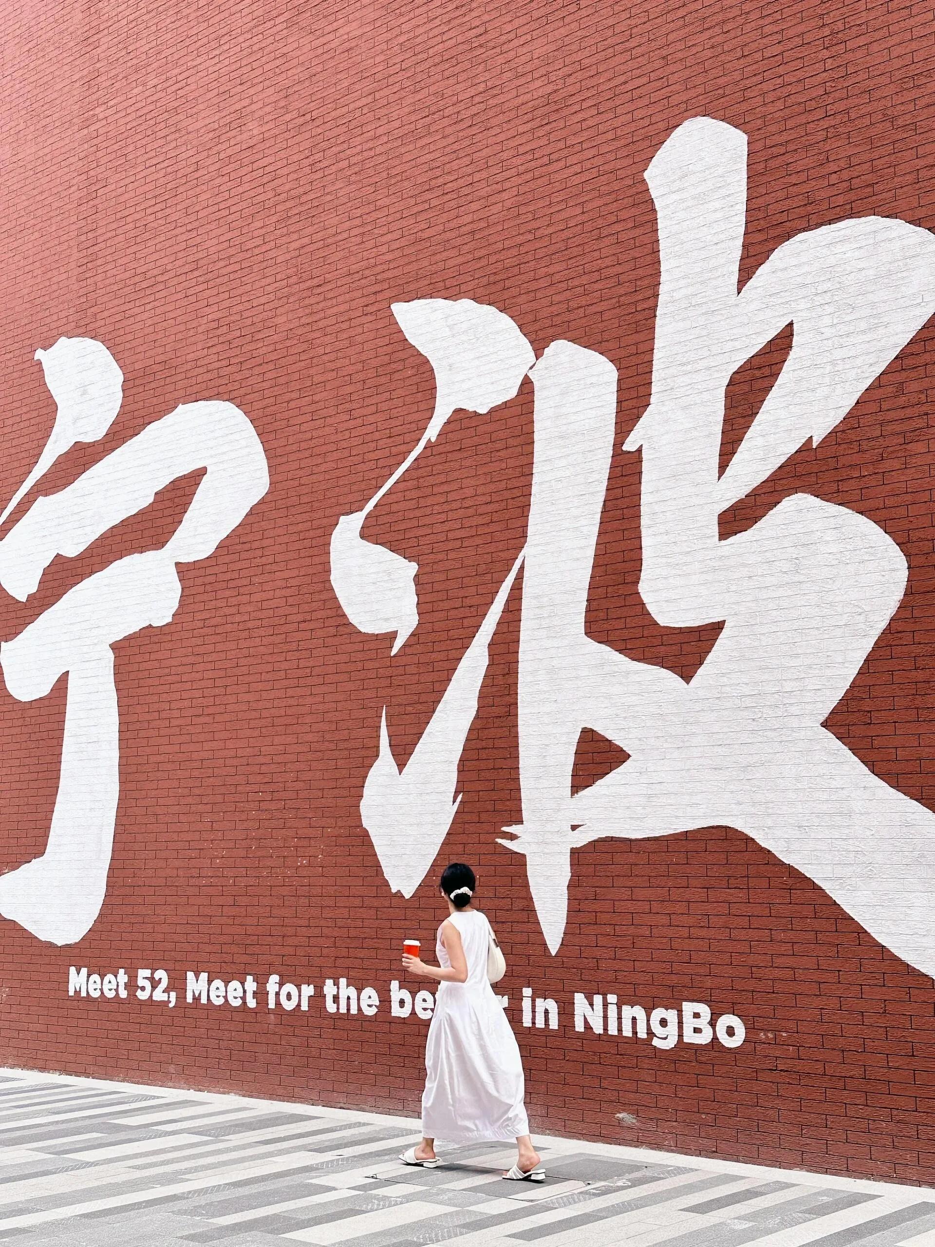 东遇meet52是宁波的新地标 ,这里有宁波最大的“宁波”海报墙。现场观看非常震撼,复古红砖配上白色字体,无论从哪个角度拍摄都能拍出好照片。