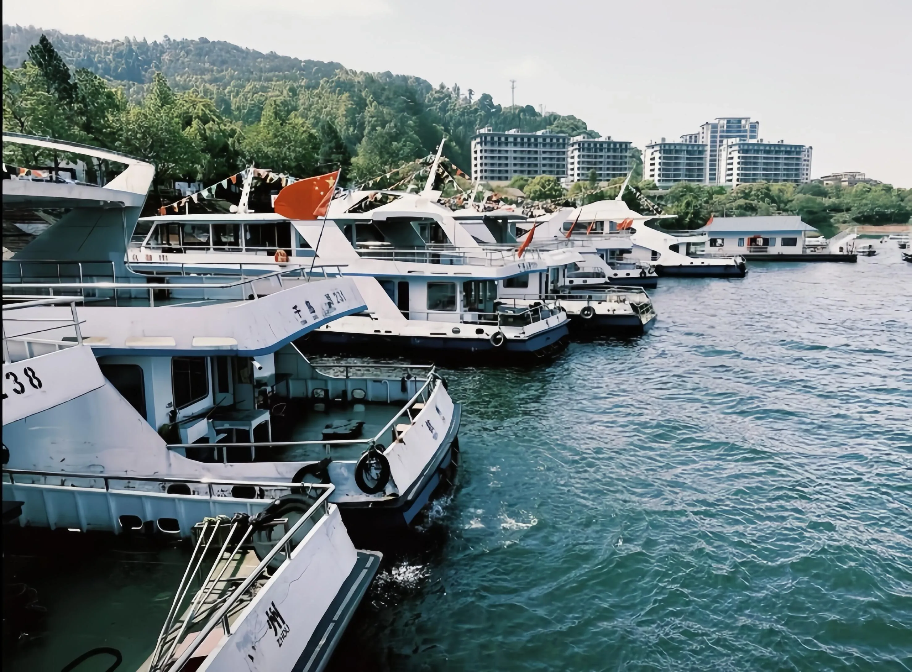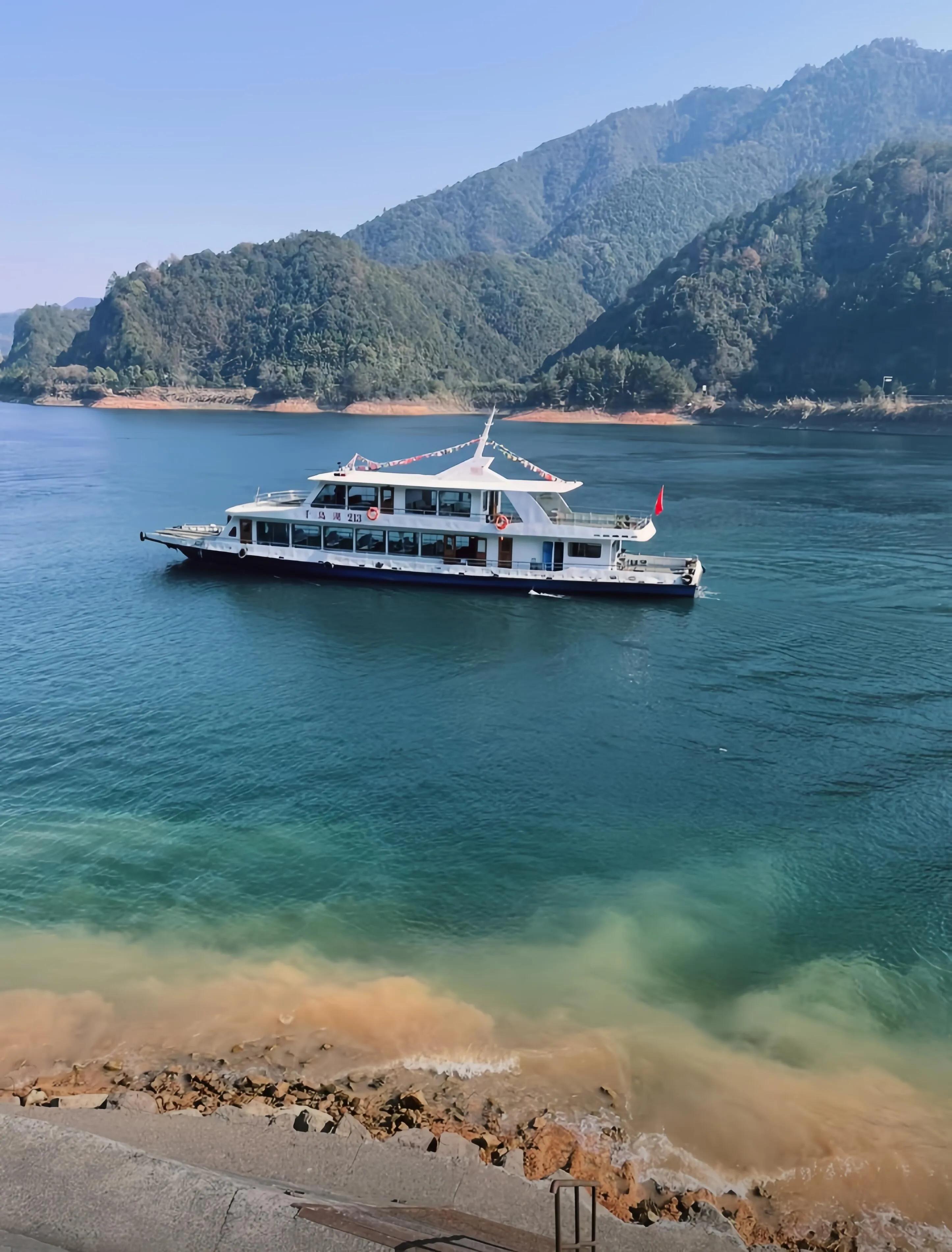 早上8点从千岛湖客运站出发,首先前往天屿山。乘坐上山电梯,在观景台欣赏千岛湖的全景,俯瞰湖光山色。 天屿山门票50元,上山扶梯30元(学生半价) ,下山可乘坐大巴(10元)。