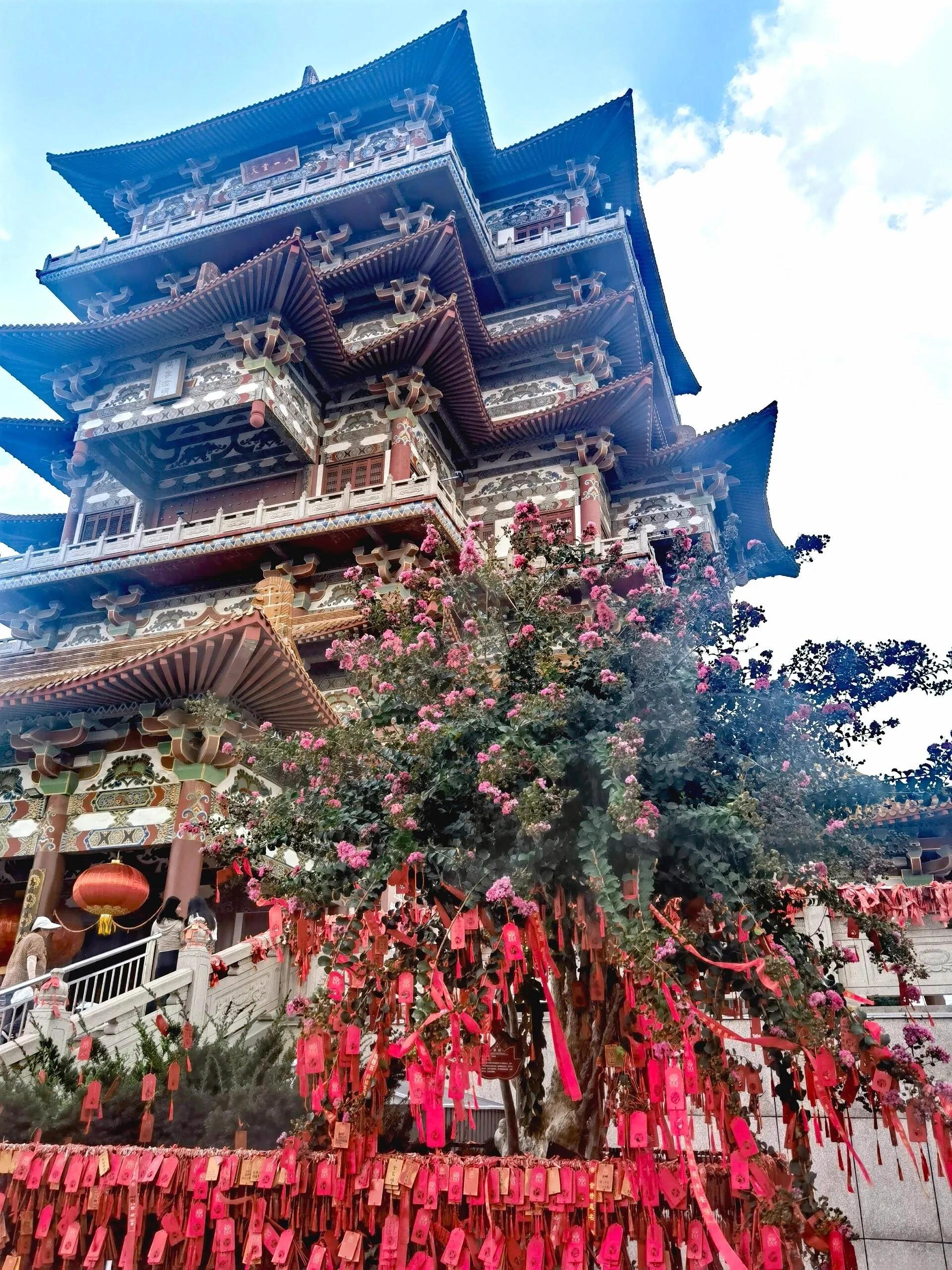 停车可能会有些困难,建议在十字路口以北100米路西的小停车场停车。从那里步行到十方斋,再往前就是大门。寺庙门口有素面、包子和糕点可以品尝,其中素面特别推荐。如果人多,可以去大门东边的十方斋就餐。进入寺庙前可以免费领取三支香,记得点香时不要用嘴吹灭火苗。