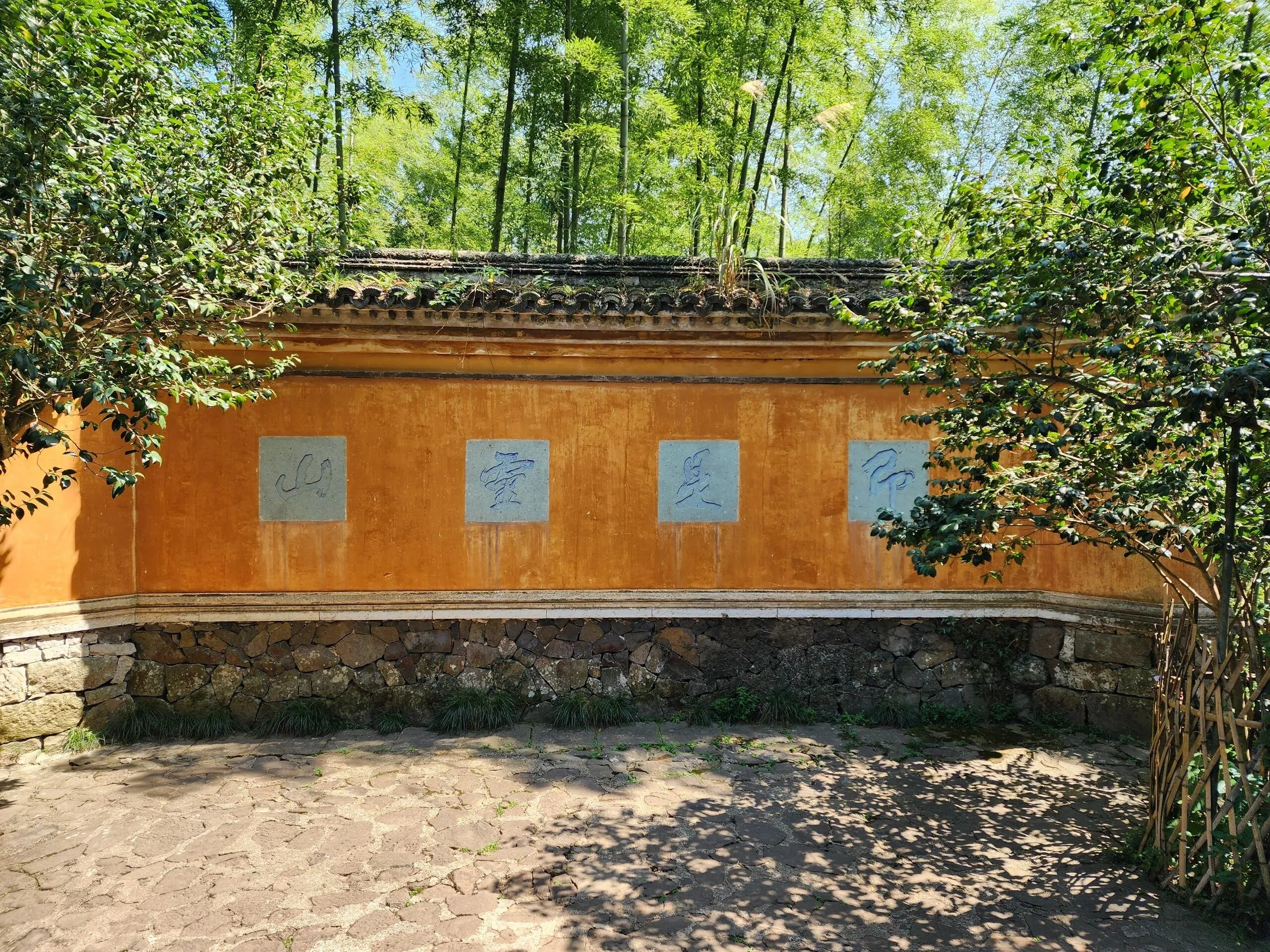 智者塔院,又名“真觉讲寺” ,是另一处值得一游的地方。从停车处需要走一段古道才能到达。塔院内的布局颇具特色,智者肉身塔、护法神韦驮、弥勒菩萨、山门和灵山照壁都在同一直线上,形成独特的景观。
