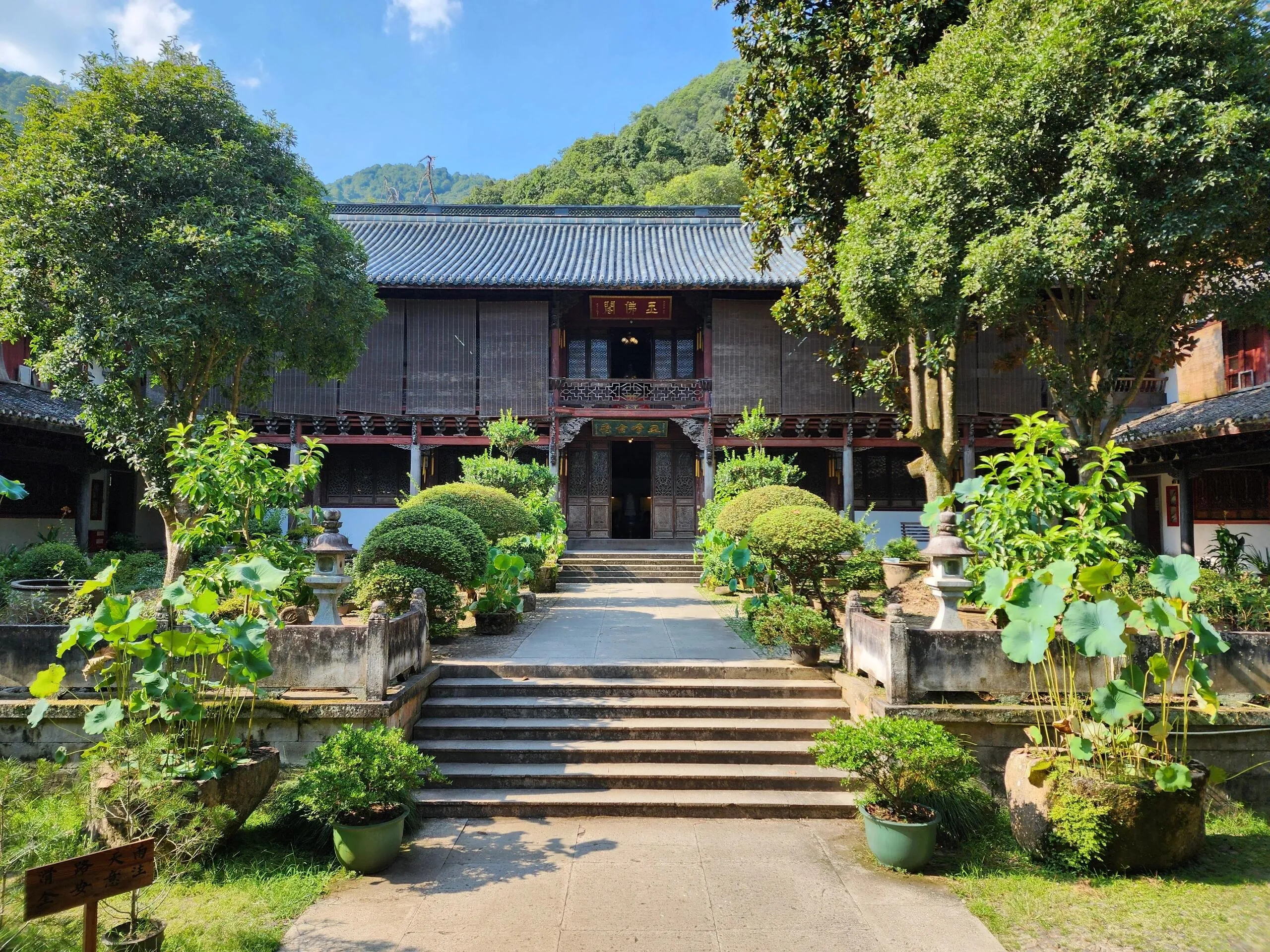 天台山是中国佛教天台宗的发源地,其中 国清寺是最具代表性的寺院之一 。国清寺由隋代高僧智越创立,是天台宗的发祥地。虽然周末游人如织,亭台楼阁依旧保存完好,但难以感受到清净修行的氛围。作为知名讲寺,国清寺的教室、僧舍和食堂规模可观,通知布告栏上的课程安排也显示出寺院的教学活动十分充实。然而,寺院的硬件条件相对简朴。