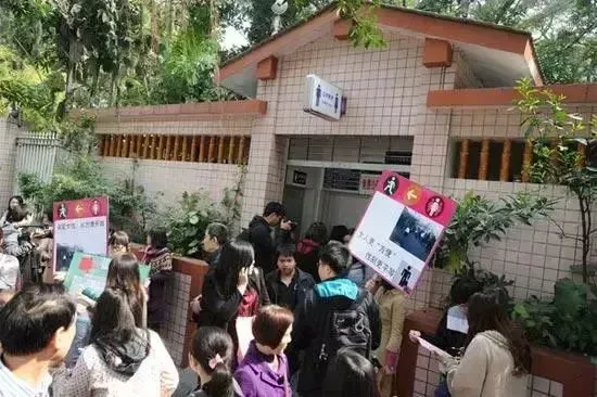2012年,在广州,几名女大学生发起了“占领男厕所”的行为艺术,旨在呼吁公众与政府关注厕位分布的合理性,公共场合的男女厕位应比为1:2[8]。