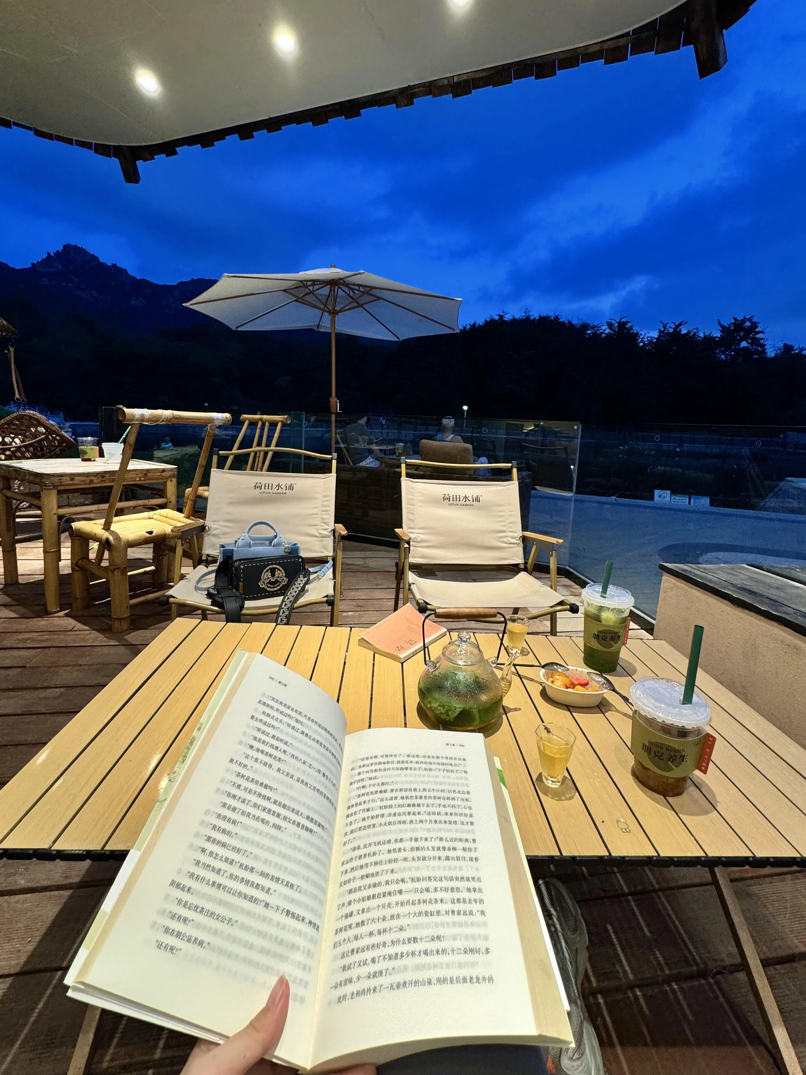 爬山累了,我常常会在山下的茶馆休息 。这里的环境堪称宝藏,湖景与山景相互呼应,仿佛置身于天然氧吧中。在这里喝茶、发呆、看书,整个人都会感到无比放松。
