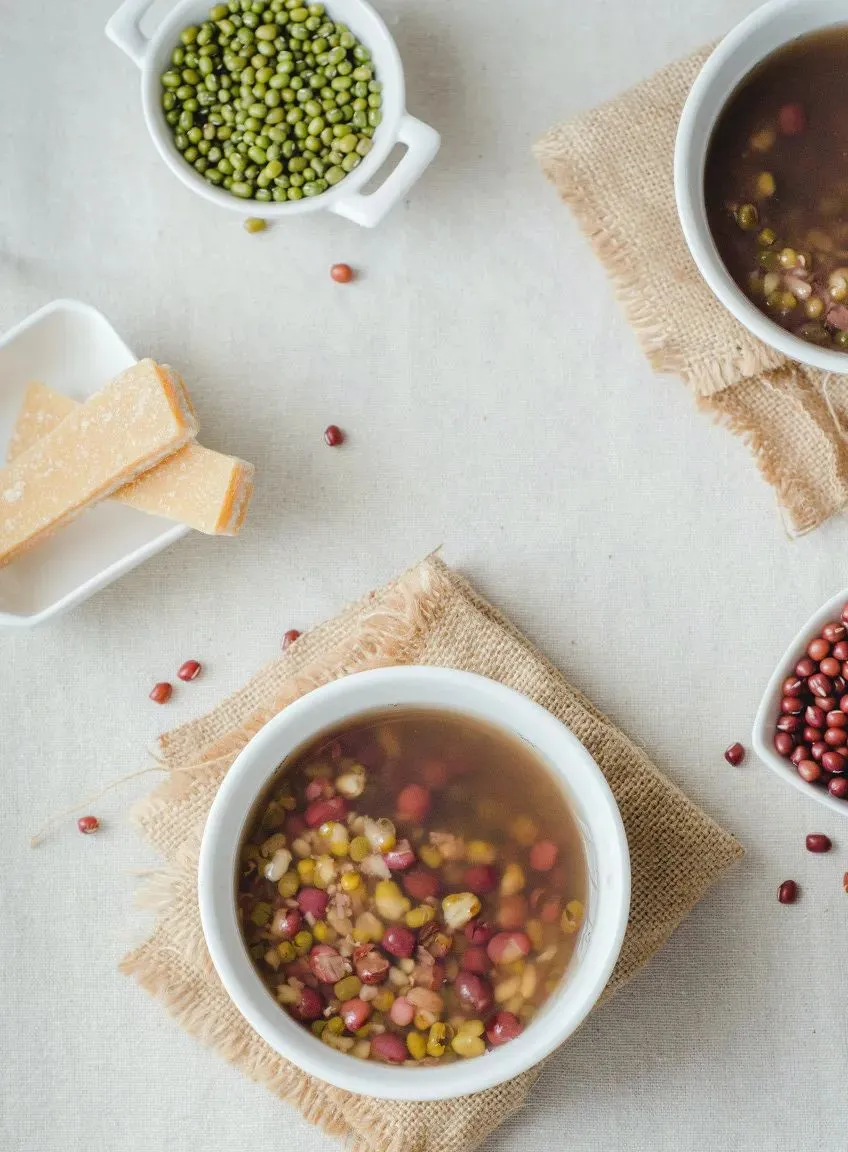 豆制品如红豆沙和绿豆沙,清甜爽口,多用于消暑解热。