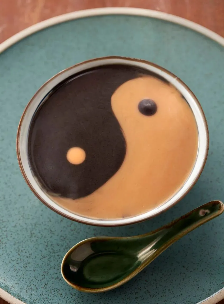 品质最佳的姜撞奶,瓷勺拿开时不会粘上一丝奶浆。