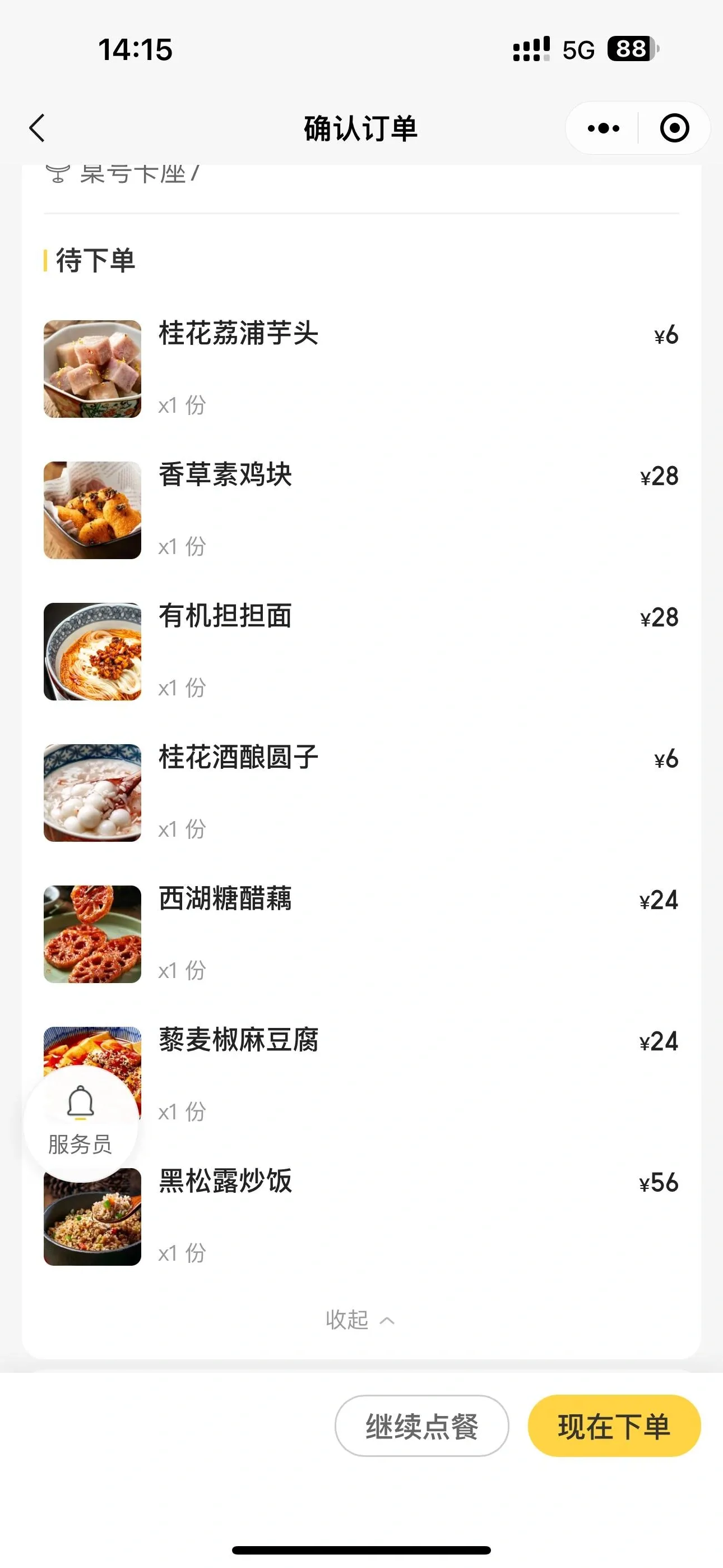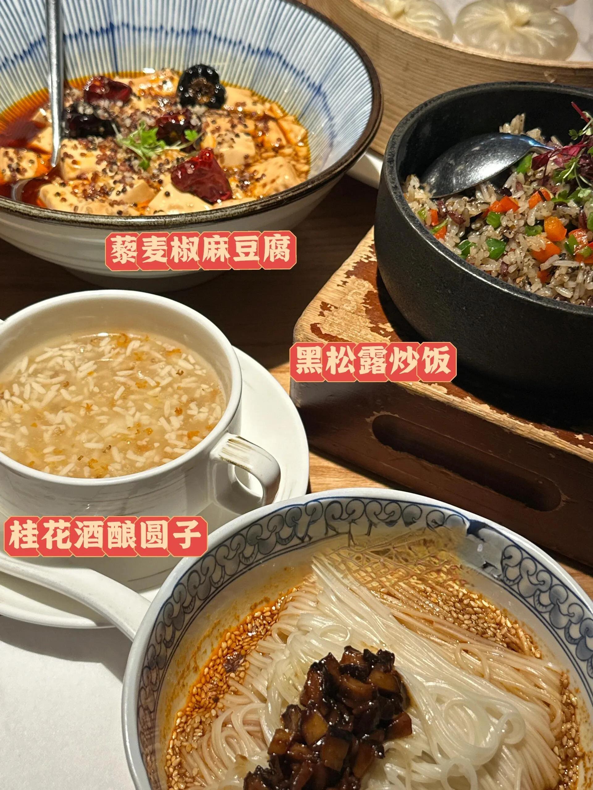 必点菜品黑松露炒饭果然名不虚传 ,米粒饱满分明,黑松露香气浓郁。 藜麦椒麻豆腐是我的最爱 ,豆腐嫩滑,微麻微辣,鲜香可口。 松茸汤包皮薄汁多,鲜香四溢 ,建议趁热食用,蘸醋更佳。桂花荔浦芋头软糯绵密,搭配糖桂花清甜可口。