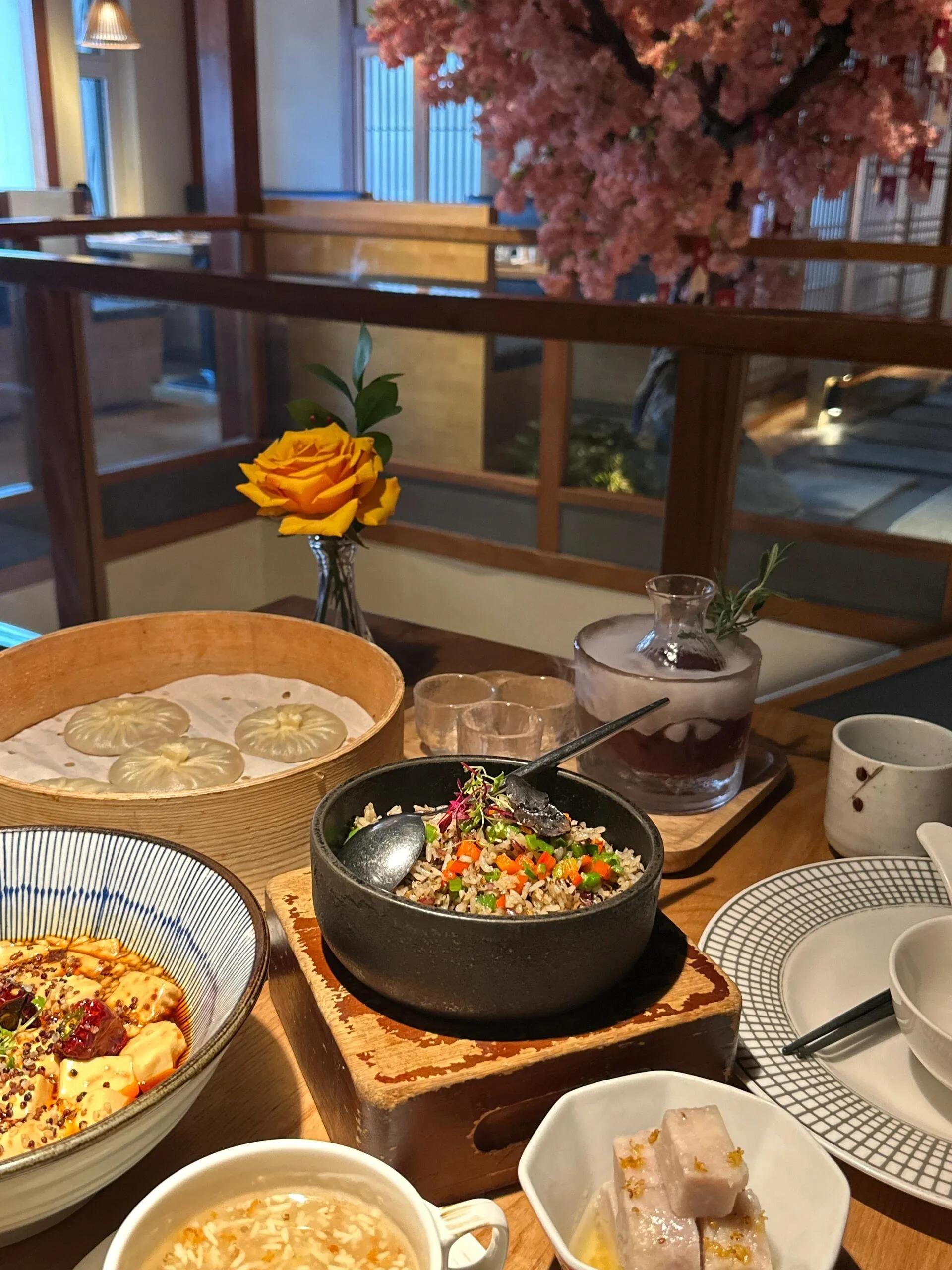 庆春食堂是杭州素食界的一颗明星 ,据说是素食天花板级别的存在。店面低调简约,木门后别有洞天。内部装修古朴典雅,带有日式风格,非常适合拍照。