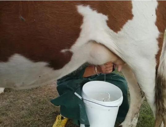 上图显示的是挤牛奶和羊奶的过程。
