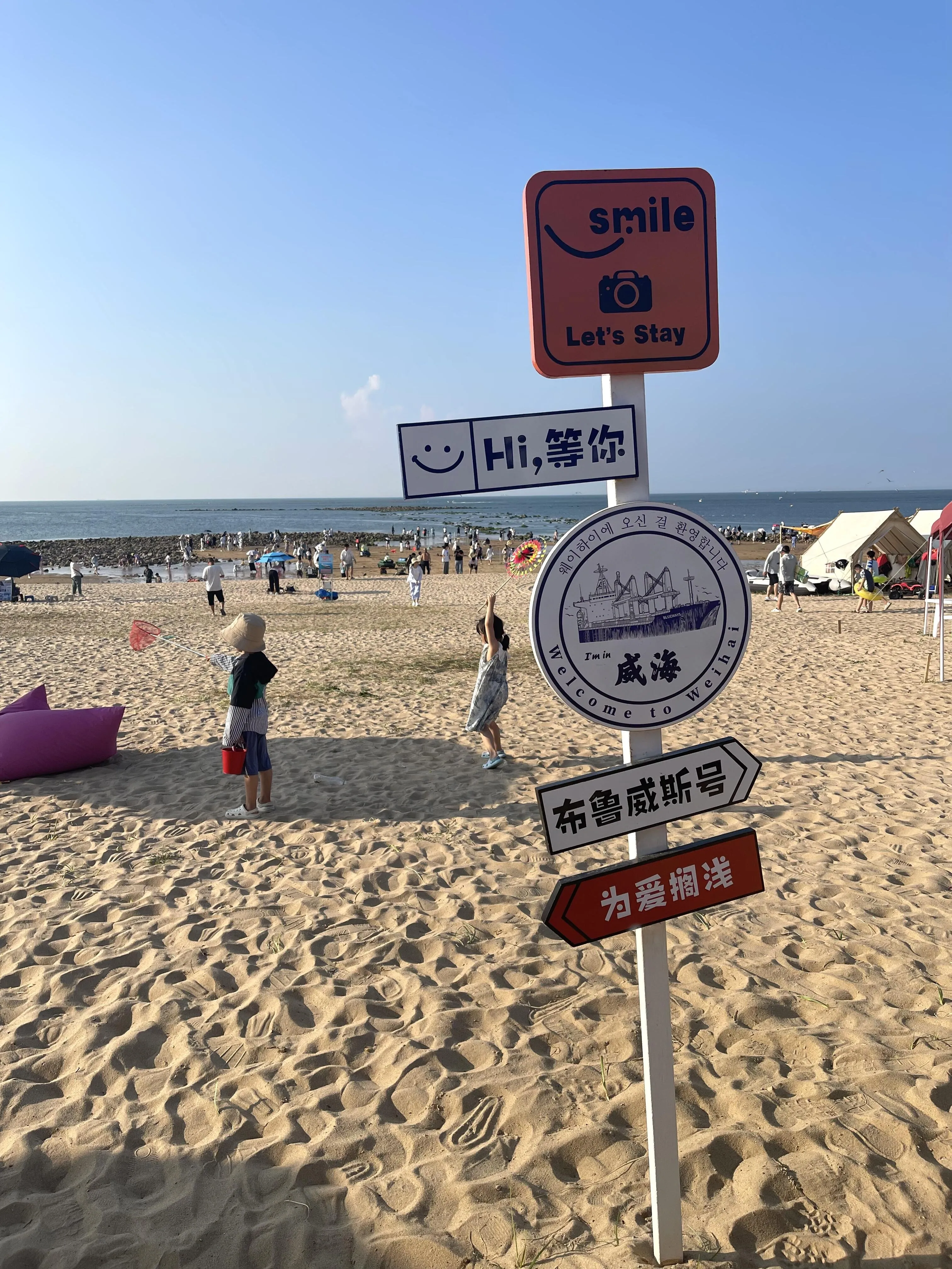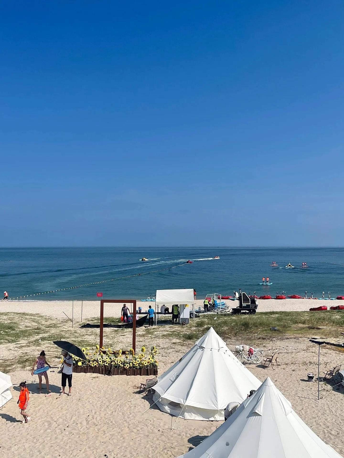第一天的行程从荣成开始。下午抵达后,直接前往 那香海附近的海边帐篷入住 。这里的海滩非常适合孩子们玩耍,可以玩沙子、寻找小螃蟹、游泳,还有各种水上项目可以体验。附近的海狼野战基地也值得一游,可以看到海星,捡贝壳。傍晚时分,欣赏美丽的日落,然后沿着环海路骑电瓶车,感受海风拂面。晚上可以在海边放烟花,随后在附近的体育公园周边享用晚餐,那里有很多餐馆和超市可以选择。