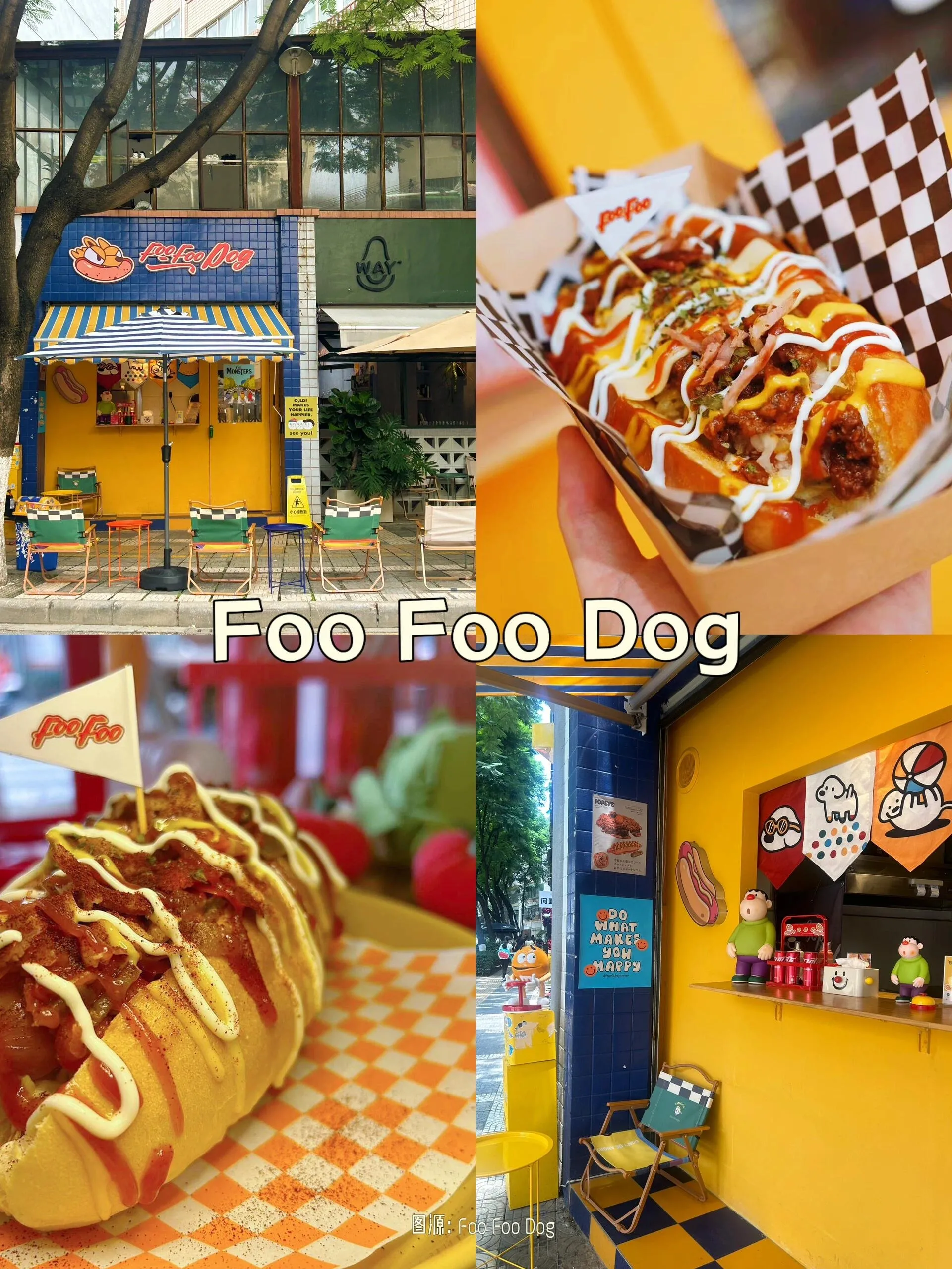 Foo Foo dog是昆明少有的热狗店 ,黄蓝配色很美式。热狗品类多,酱料足,趁热吃是脆香脆香的,门口有可爱的桌椅供小憩。