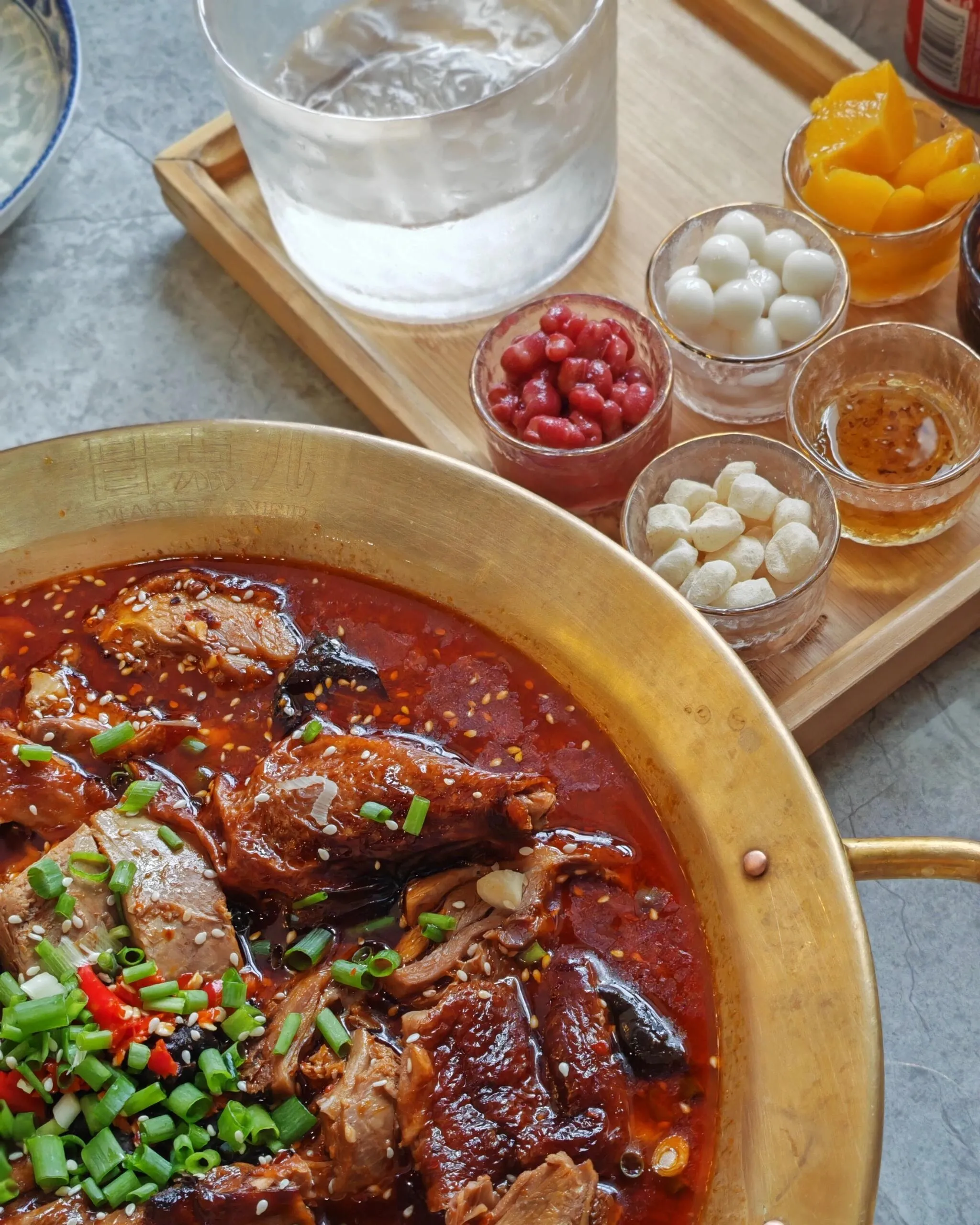 下午可以到冒烤鸭就餐。 这家川菜馆香气四溢,菜品口味正宗。 素菜打底加烤鸭的搭配很棒,份量充足。店内还提供DIY冰粉,值得一试。