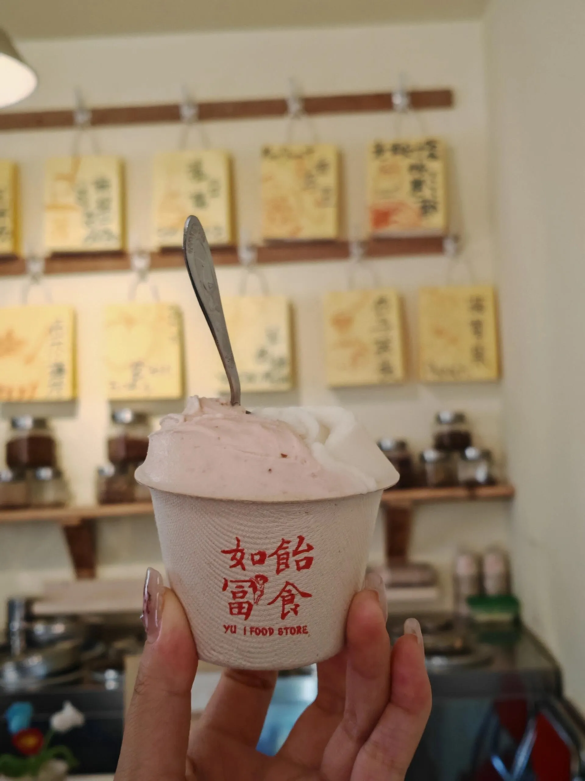 甜点可以选择如怡富食的冰激凌。 店面虽小但整洁舒适,老板是位潮流感十足的天津大姨。推荐尝试老豆浆味和酱豆腐味,每份35元。