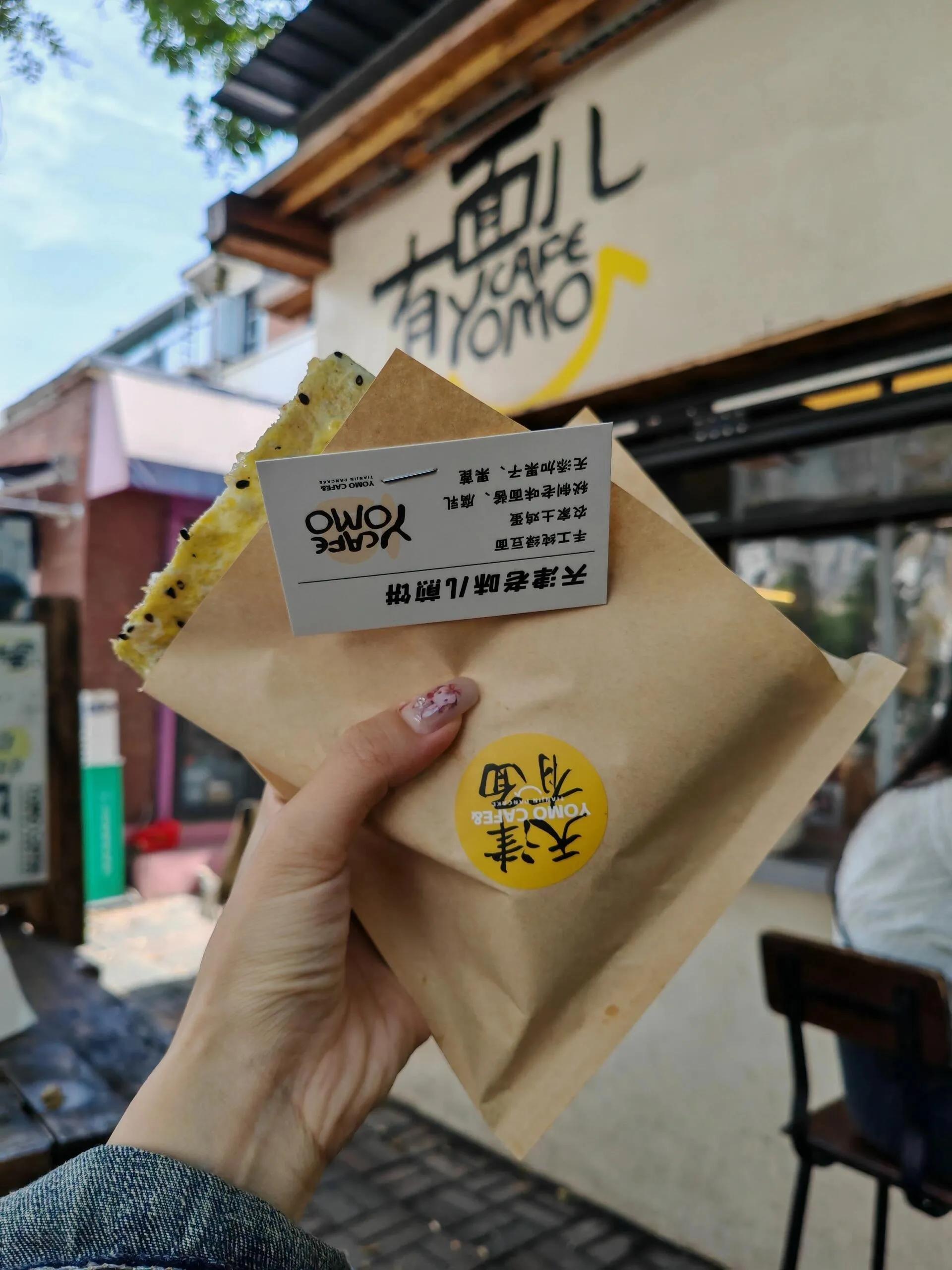 午餐时分, 可以在有面儿品尝煎饼配咖啡,体验中西合璧的美食。 推荐“刘畊宏套餐”,煎饼只加薄脆,刷腐乳和面酱,口感不错。