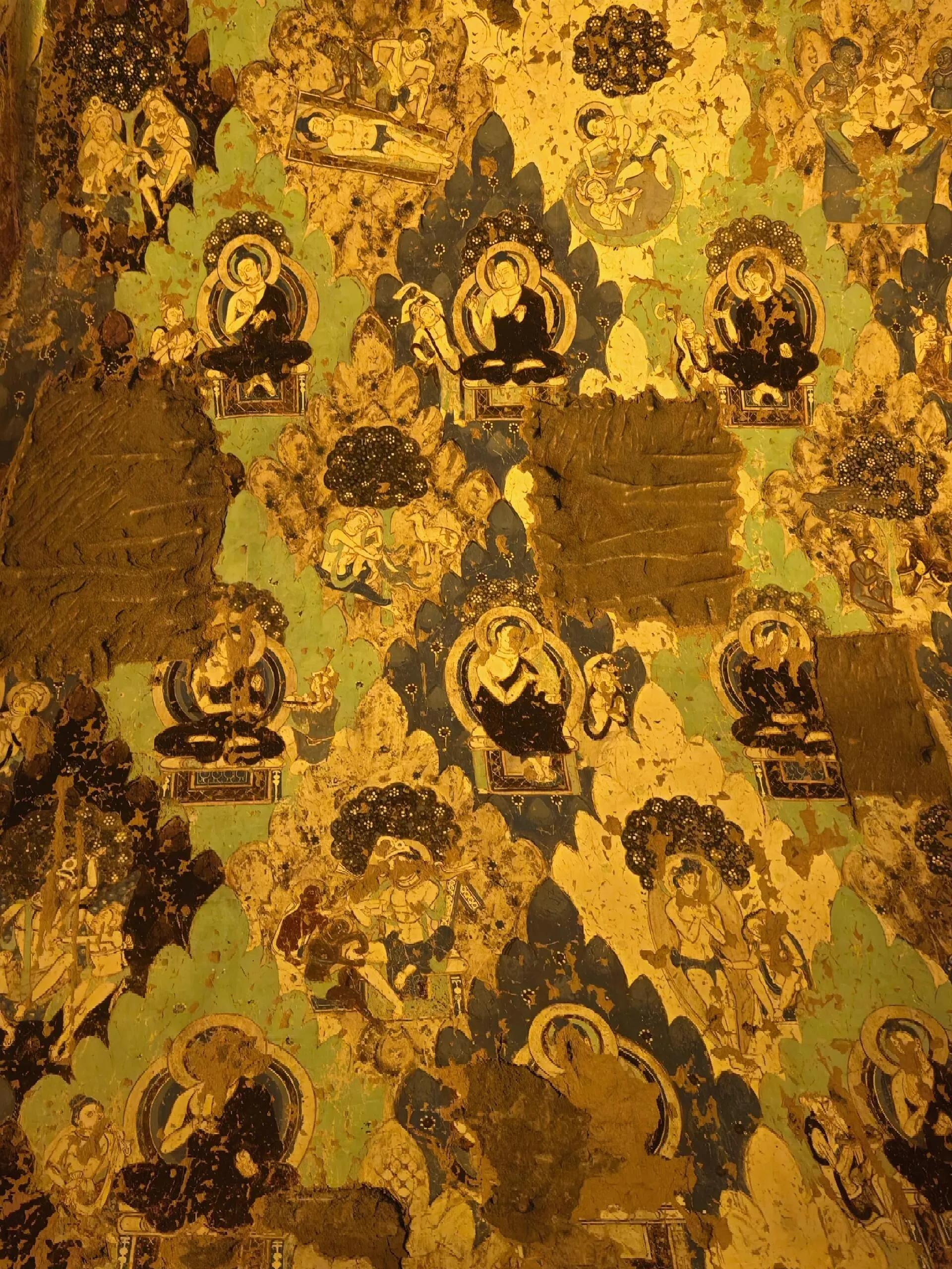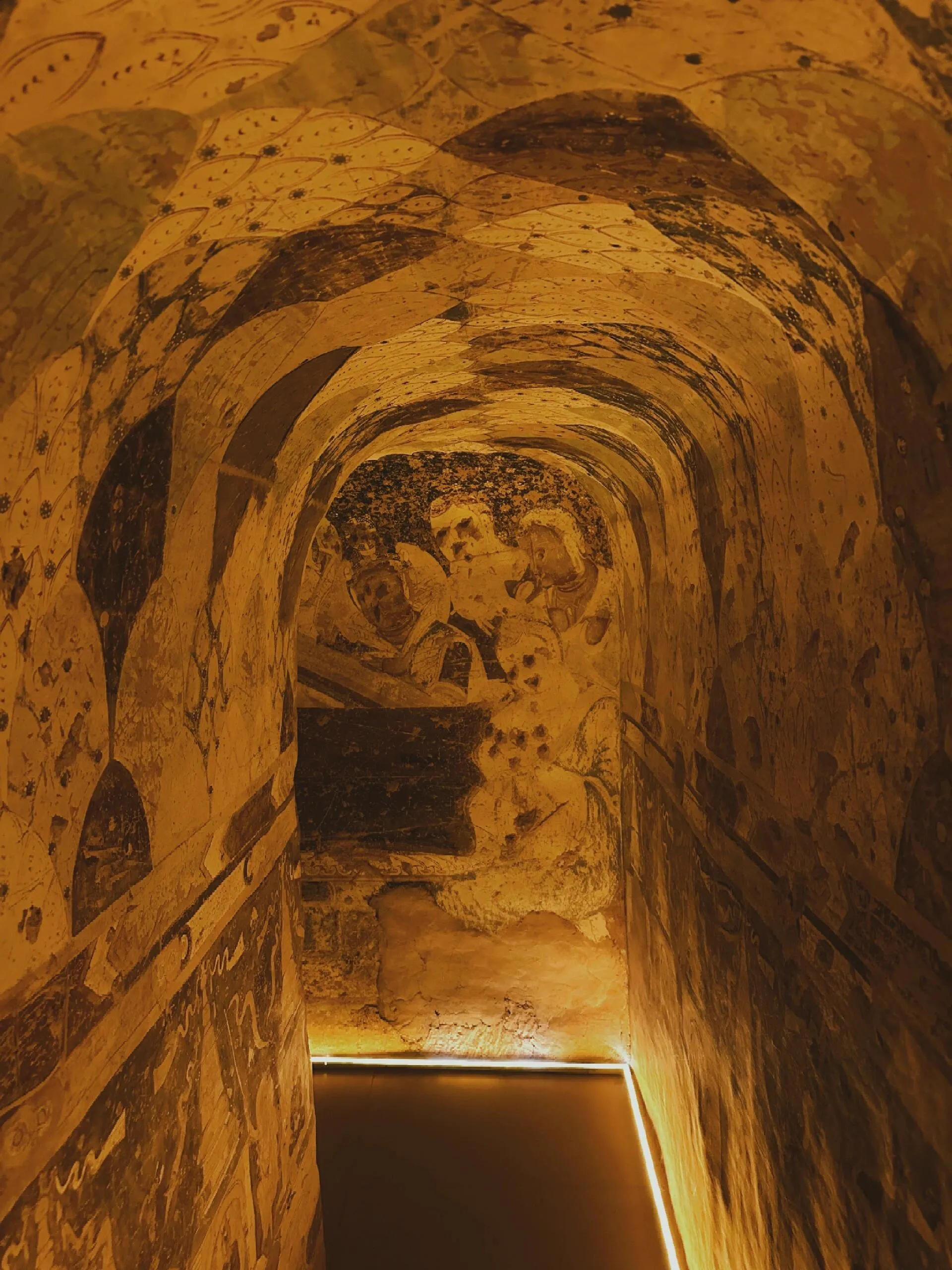 这次参观的主要亮点是位于2楼的复刻版新疆克孜尔石窟,展示了令人惊叹的龟兹文化。克孜尔石窟,也被称为克孜尔千佛洞,始建于公元3世纪后期,拥有超过千年的历史,甚至比敦煌莫高窟早300年。龟兹石窟以其独特的风格结合了洞窟、雕塑和壁画,展现了古代佛教艺术在中国的发展、传播和演变过程,因此被誉为“中国第二敦煌”。