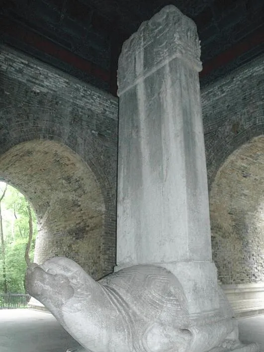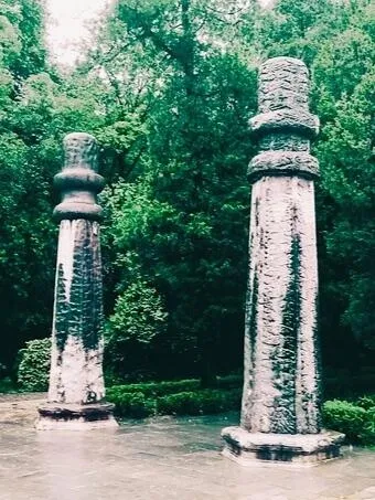 望柱:两根类似华表的柱子。左边是翁仲路通往朱元璋的宝城宝顶,路程较长。右边是石象路。