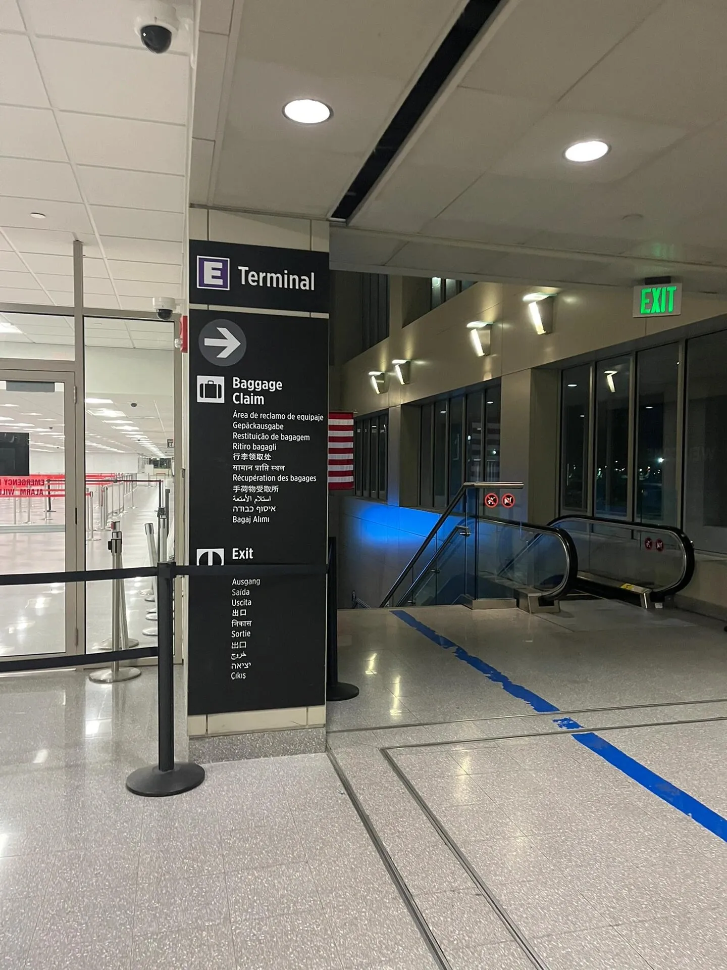 从行李领取转盘到机场出口仅需步行两分钟。