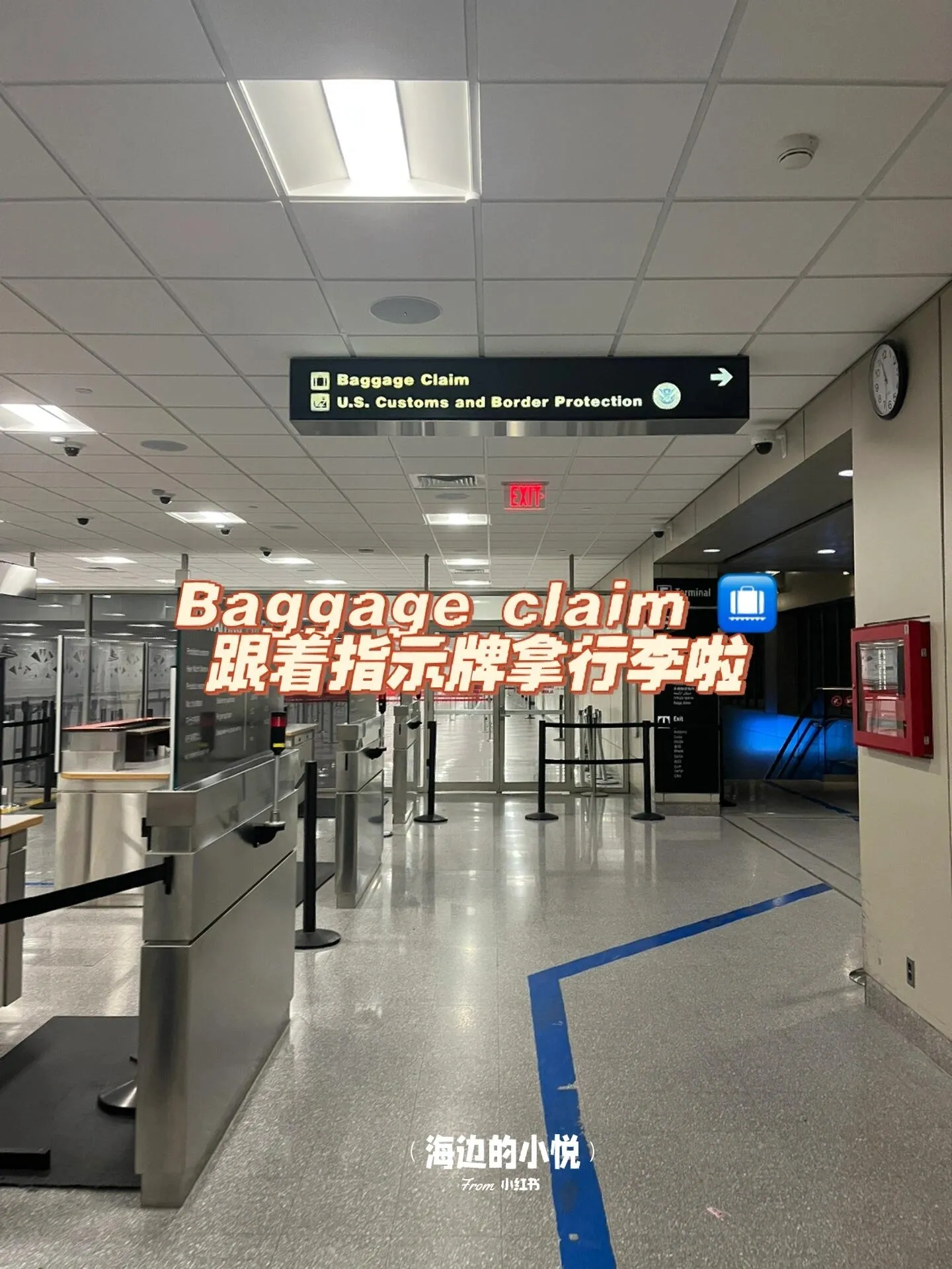 跟随“baggage claim”指示牌,需要乘电梯下楼。