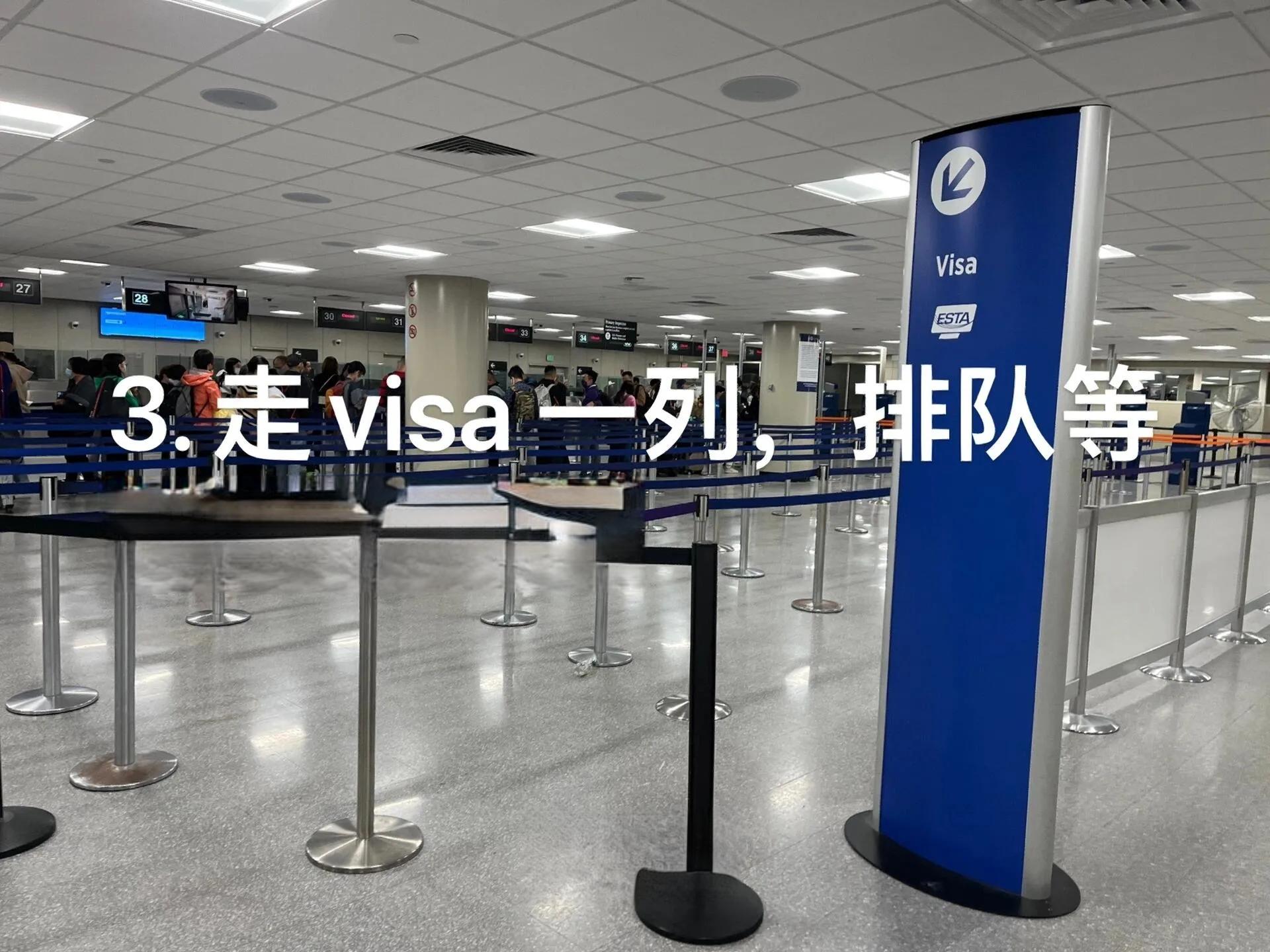 非美国公民和绿卡持有者(B、F、J类签证)需要走Visa通道排队。