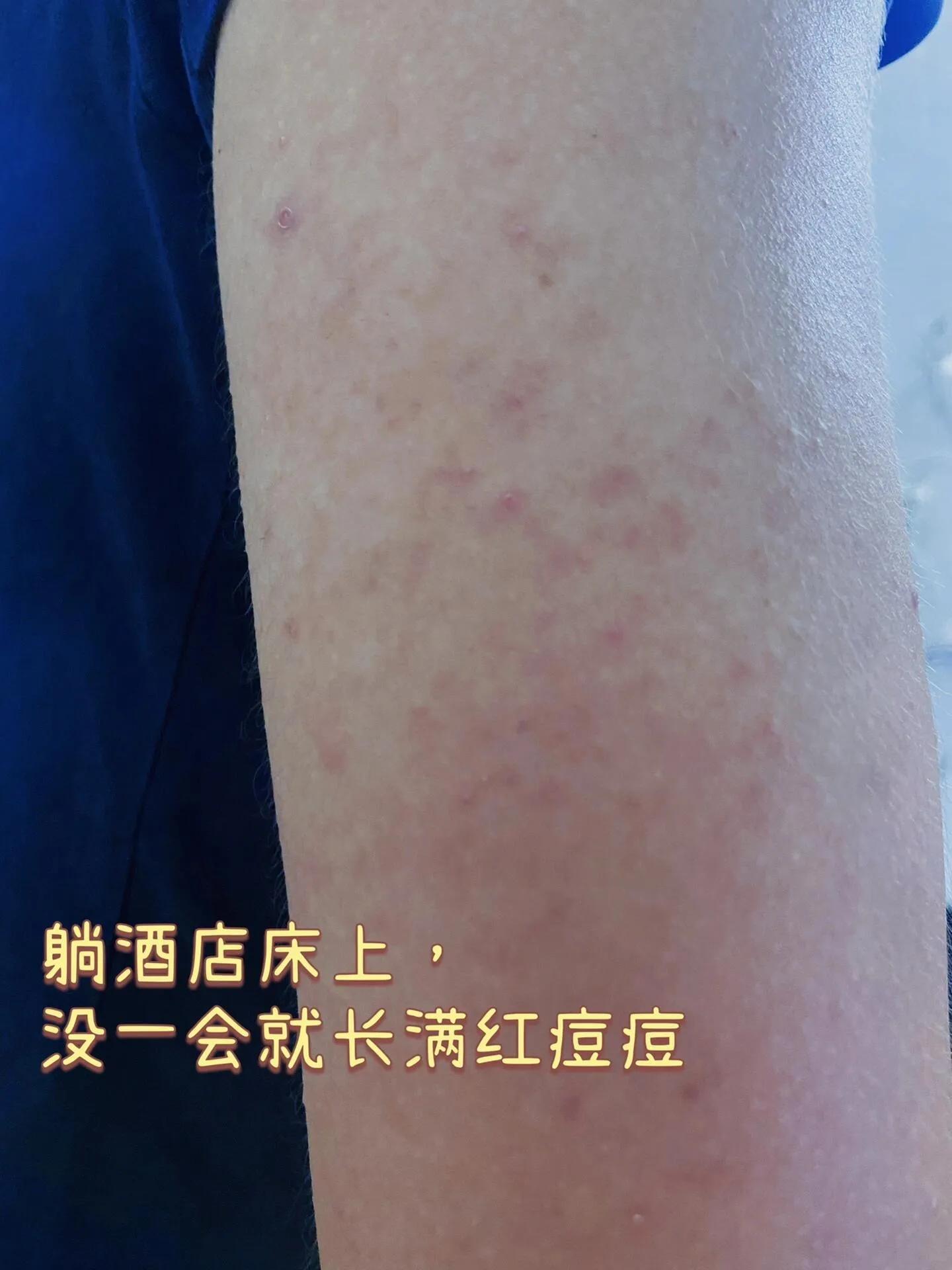 前几天队友出差,由于行程很匆忙,没有提前准备酒店用品。因此特意选了一家比较好的酒店。然而,没想到刚到酒店躺床上没一个小时,浑身就长满了红痘痘,着实吓了一跳,赶紧去了医院。