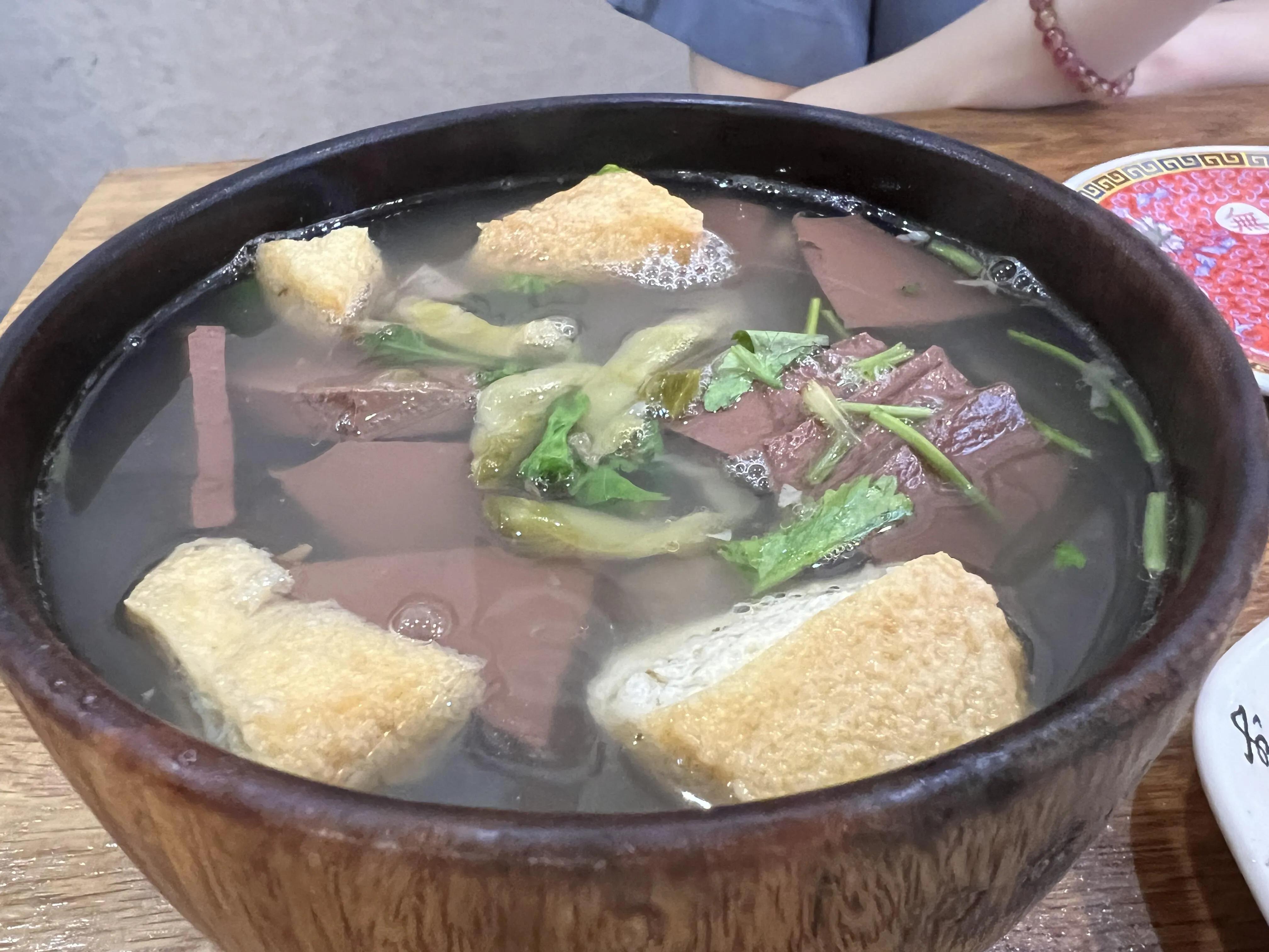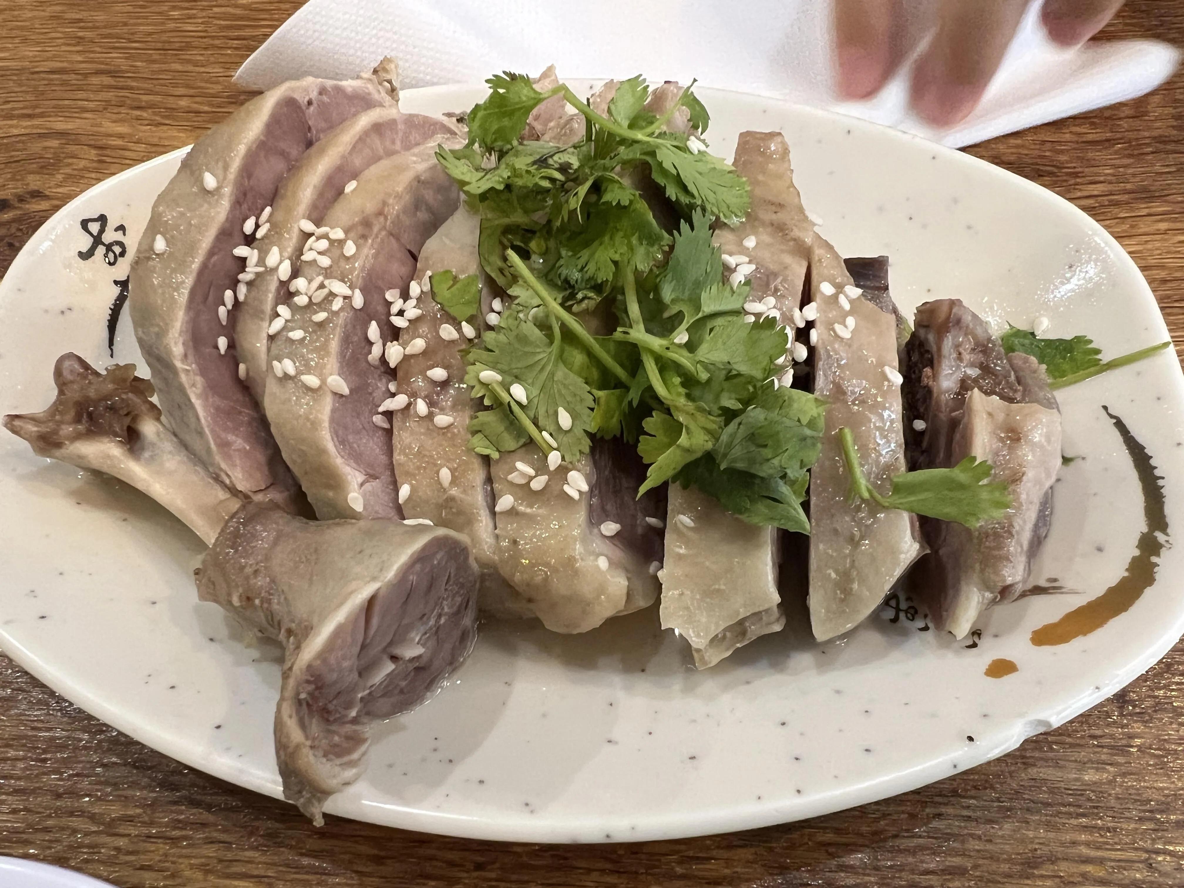 餐厅的盐水鸭水平不错,虽然香料味稍重,但瑕不掩瑜。牛肉锅贴相较于南京本地口味偏甜,外皮略显湿软。鸭血粉丝汤是该店最大的不足:鸭汤缺乏鸭子的香味,更像是味精汤;粉条比南京本地的更韧更粗;油辣子与南京传统口味相差较大,似乎使用的是罐装川南油辣子。