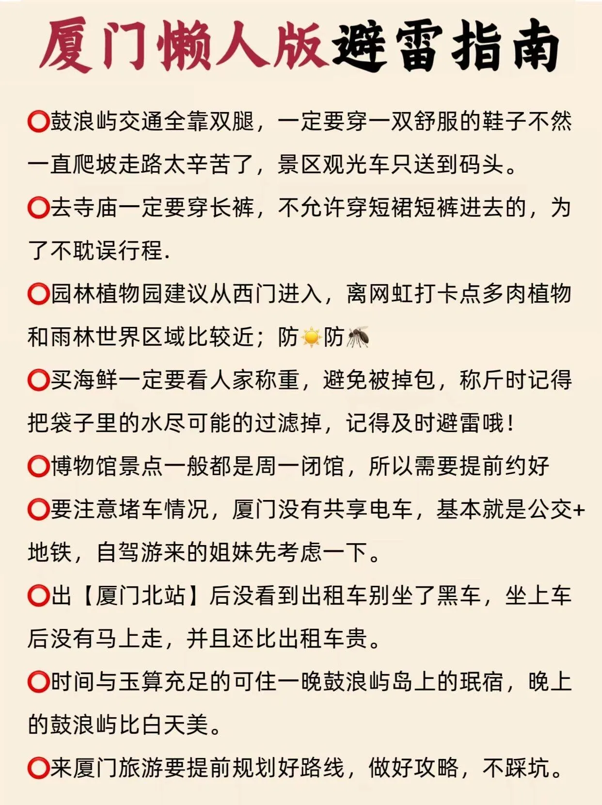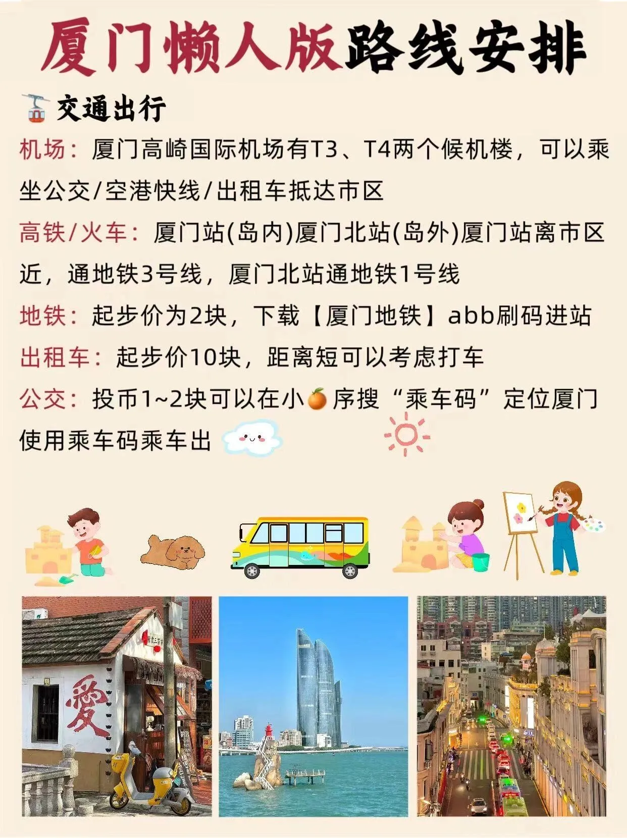 厦门是一个非常值得游玩的城市,总体消费不高,但初次前往的朋友们一定要做好攻略,避免踩坑。以下是一些实用的小建议,希望能为大家的厦门之行提供参考。