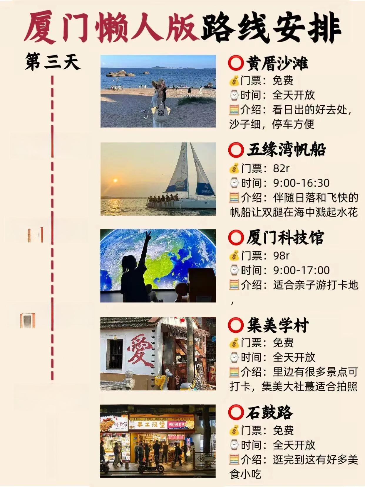 Day3:黄厝沙滩 - 五缘湾帆船 - 厦门科技馆 - 集美学村 - 石鼓路