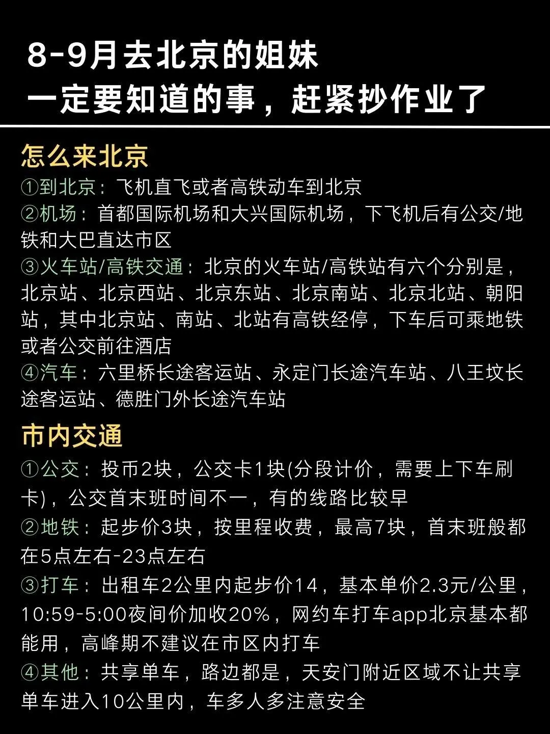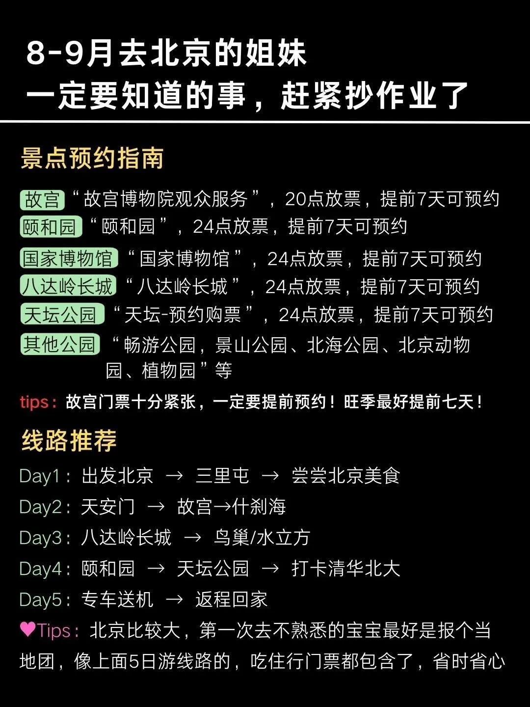 对于首次到访北京的游客,考虑到北京交通复杂且历史文化底蕴深厚,建议选择当地靠谱的旅行团。5天行程人均约1380元,包含住宿、交通和门票,既省钱又省心。