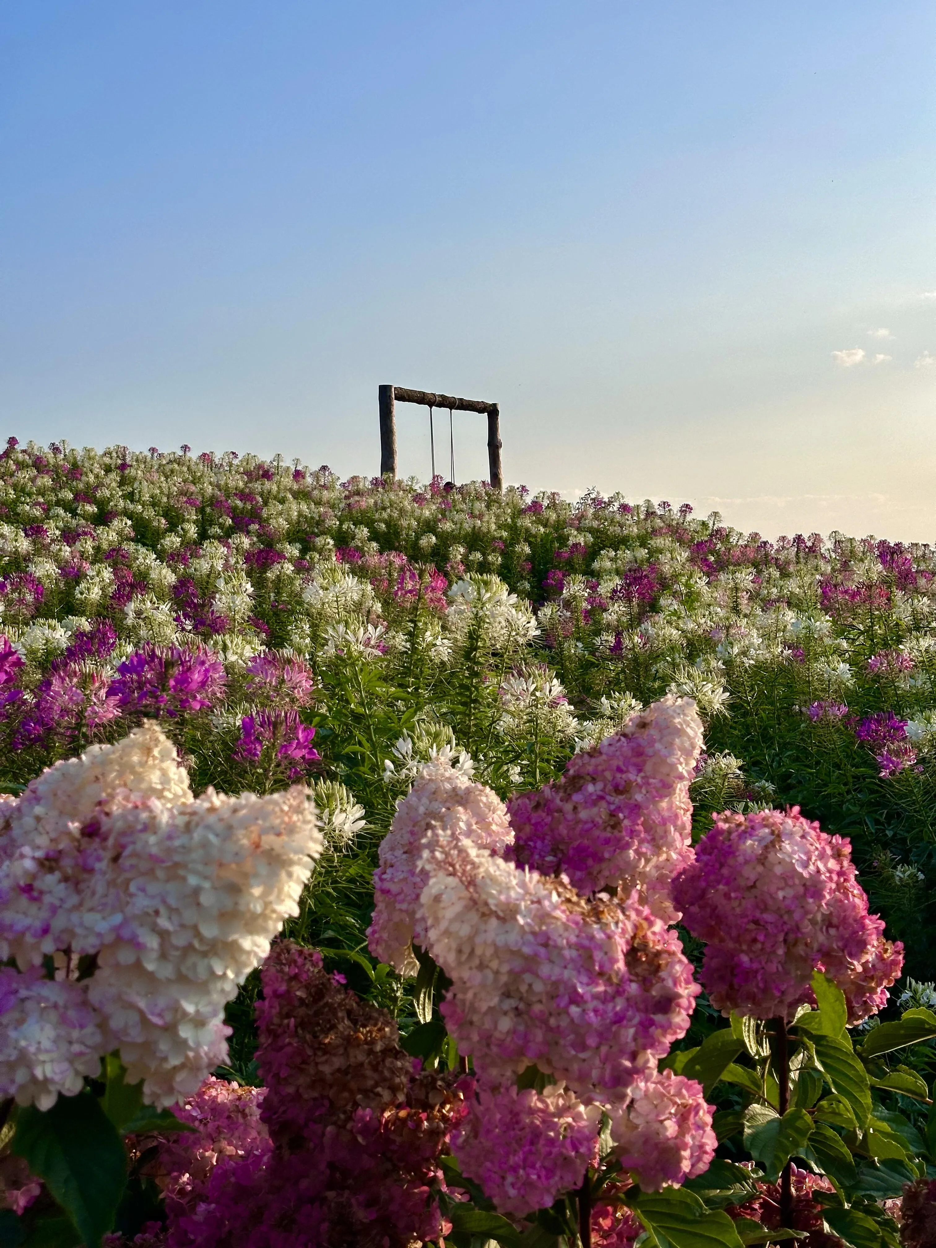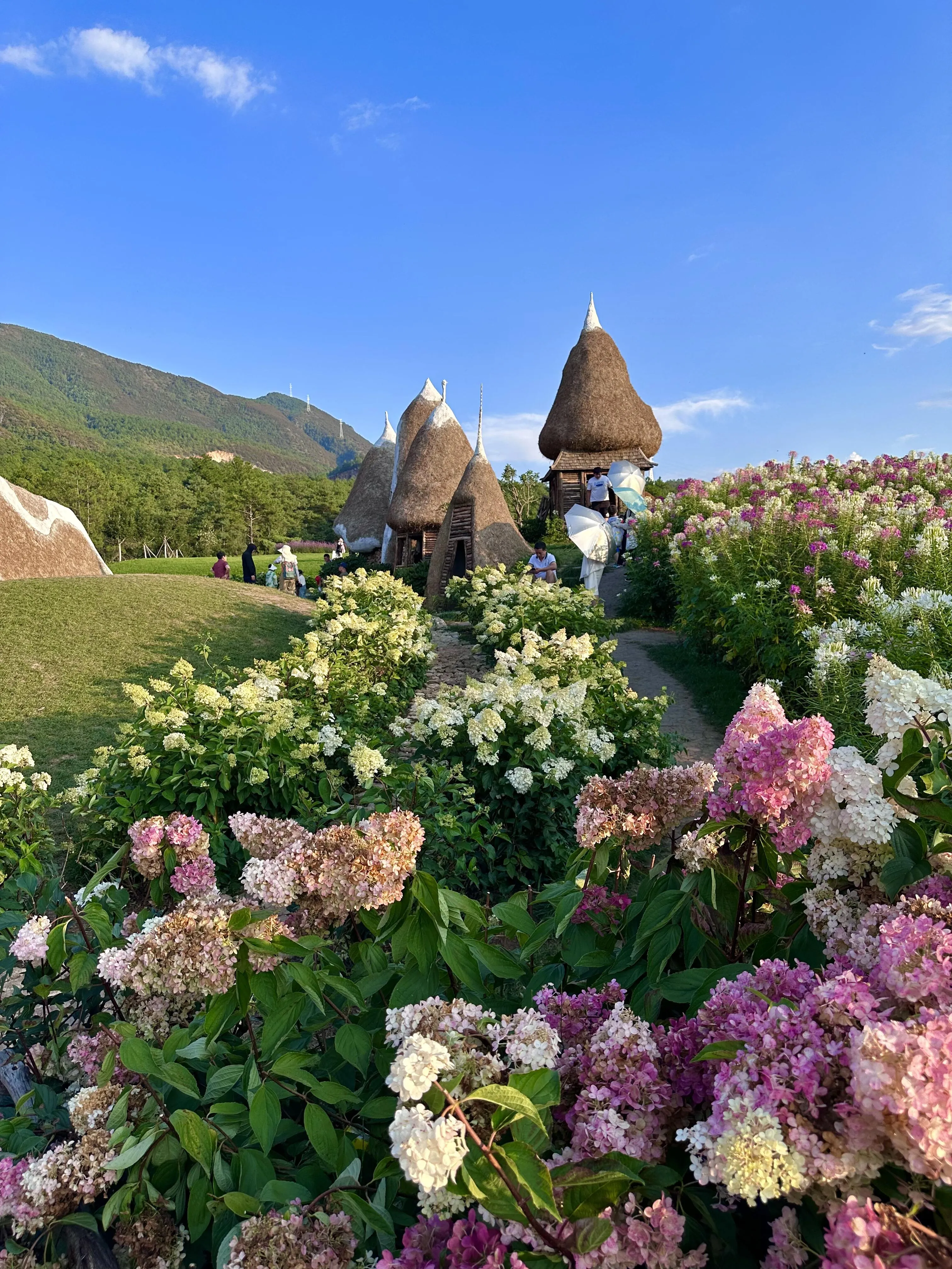 园区内花卉品种丰富 ,目前盛开的有香草草莓圆锥绣球、石灰灯圆锥绣球、大叶绣球、向日葵、醉蝶花、矮蒲苇、马鞭草、大丽花、大滨菊、硫化菊、金光菊、蛇鞭菊、金鱼草、格桑花和蜀葵等,美不胜收。