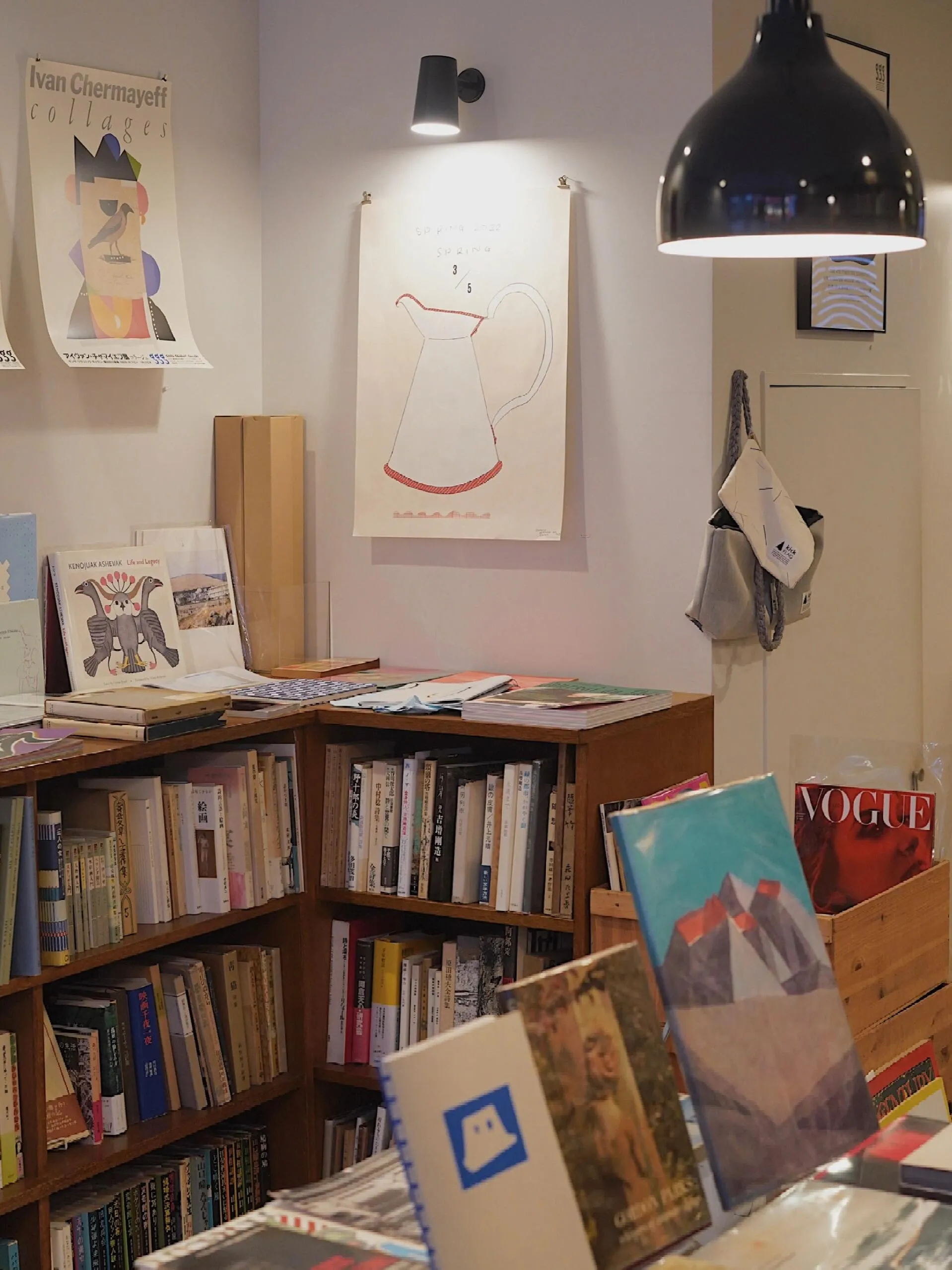 最后一站是神乐坂的“海鸥书店”。这里的布局像是一场精心策划的展览,有专门设计的书架,定期策划特定主题,还有阅读引导的可爱插画。空间被合理地分为咖啡区、书籍区和画廊区,为读者提供了多元的体验。