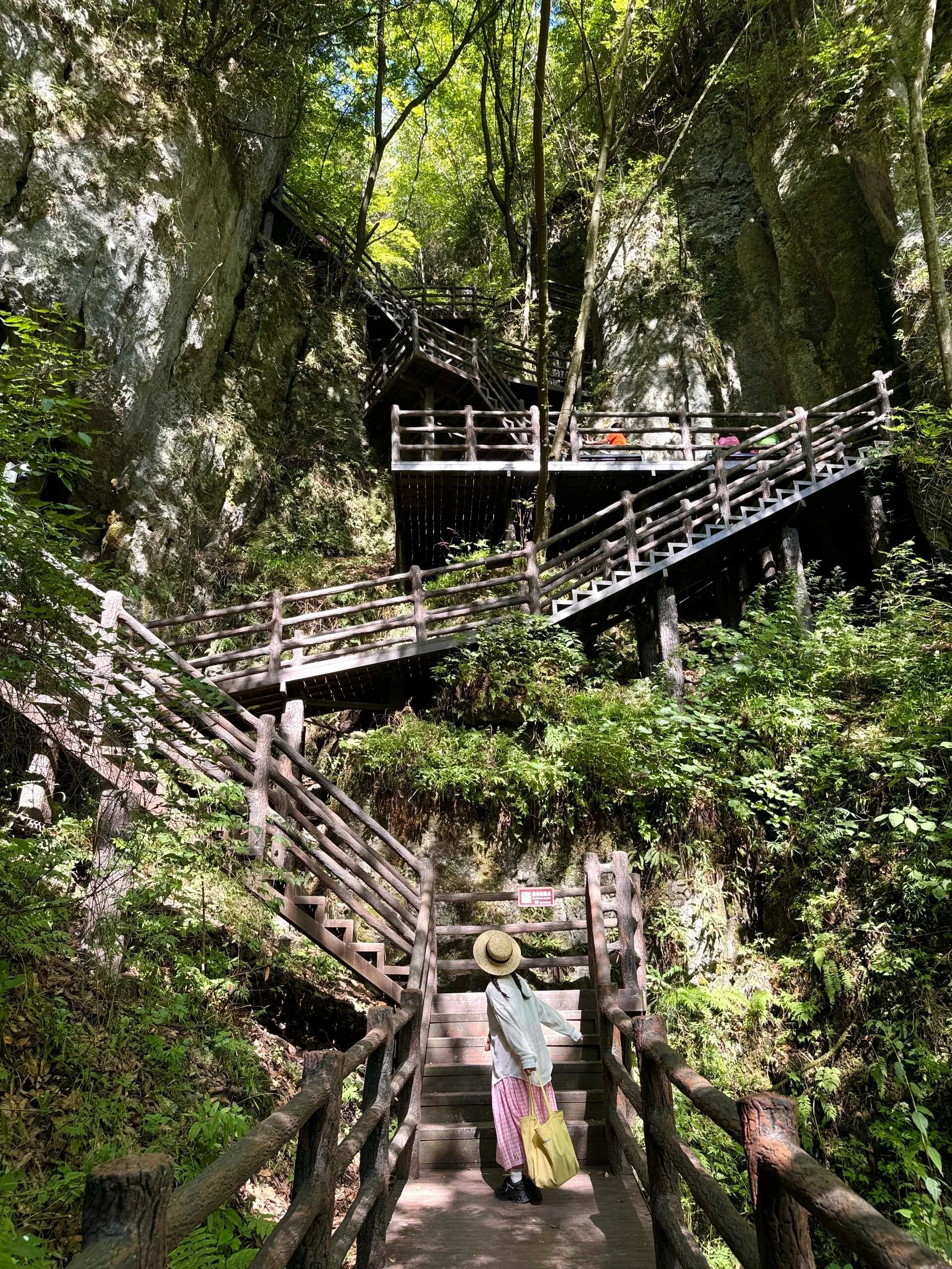 这里有着2300年的悠久历史,悬崖陡峭,古栈道鬼斧神工,峡谷江水奔流不息。而长生客栈、灵磁翅、灵溪宗的灵植……动画中的场景一一呈现在眼前,让我仿佛置身于《一念永恒》的世界中,拍了很多好看的照片。