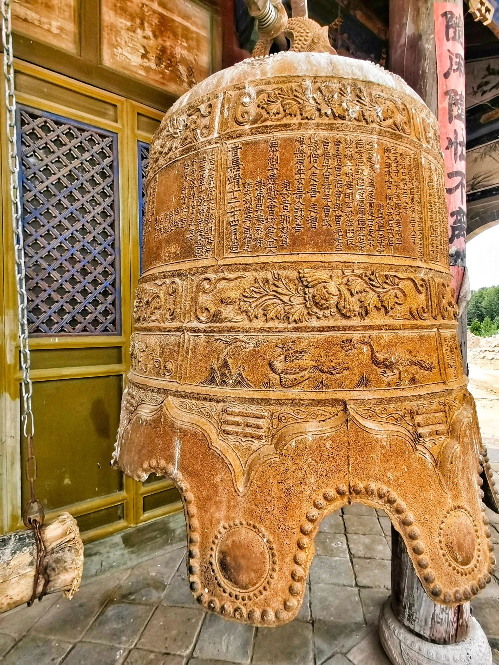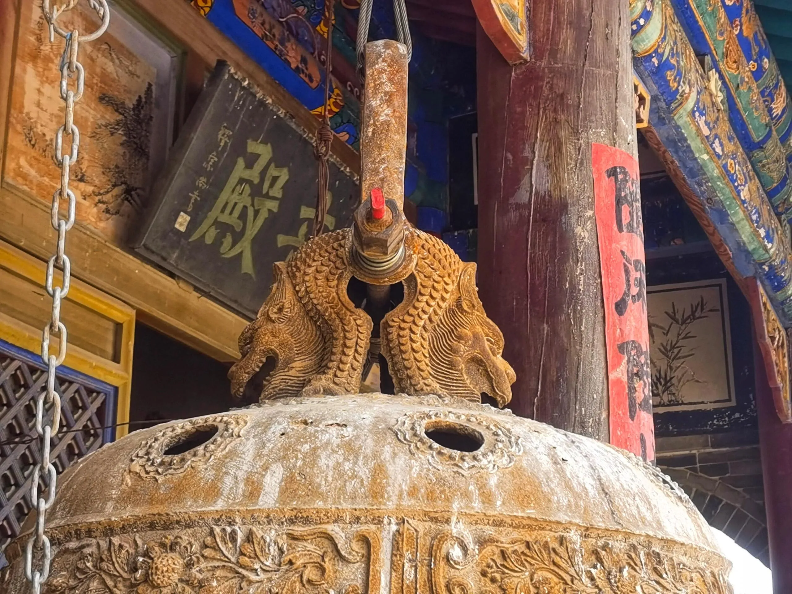 现存的古迹包括一座山门,一座唐代经幢,一座金代李秀塔 ,一通明代重塑慧远法师像碑记,以及一通清代重修娄烦寺碑记。经幢上还保留着精美的石刻人物故事,碑记也记录了娄烦寺的一些历史。我和孩子一起用手机逐字记录下碑文内容,感受历史的厚重。寺院内还悬挂着一口嘉靖年间的铜钟,钟上图案非常精美,特别是顶部的蒲牢雕刻。