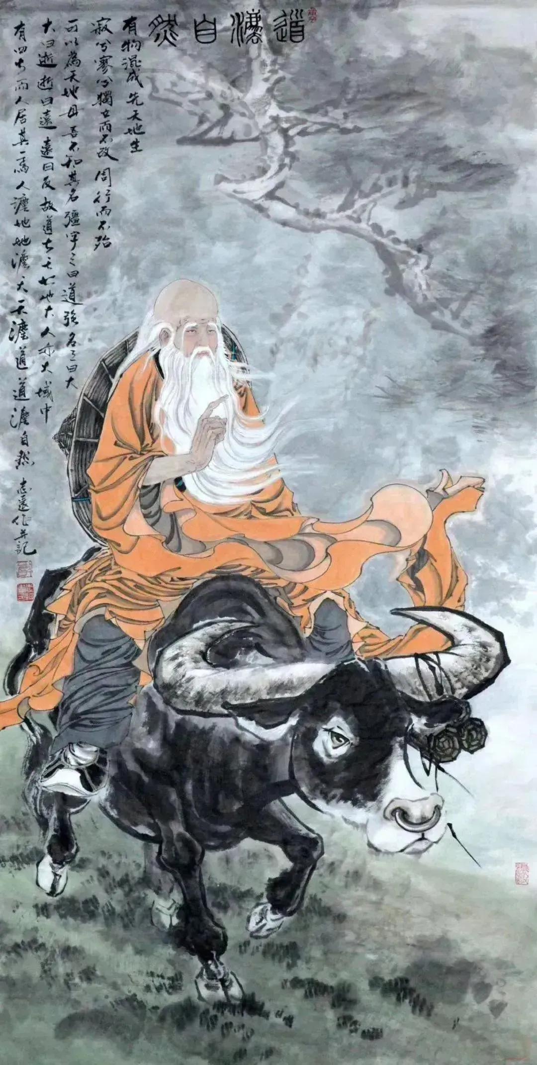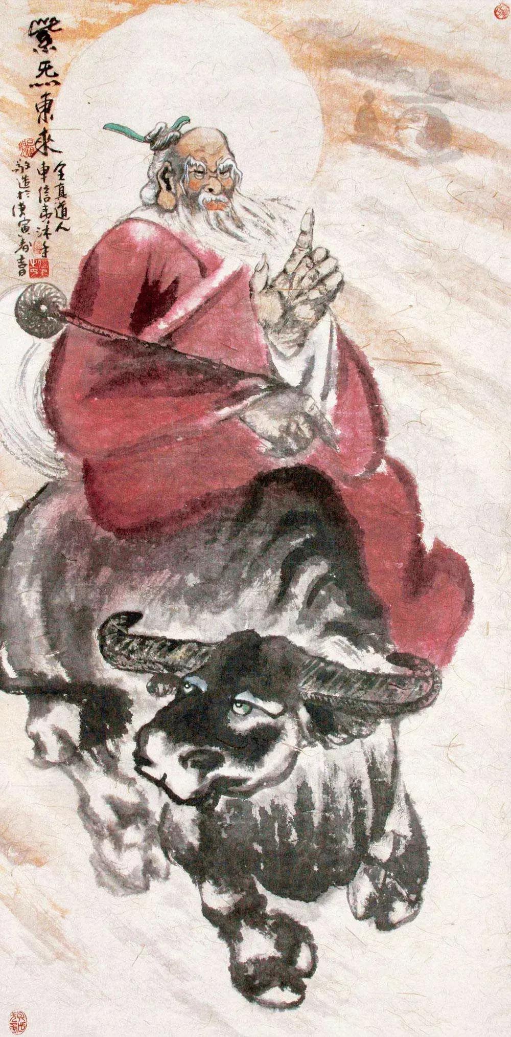 因此,“青牛”不仅代表着东方,还象征着生机与大地之德(自然之道),老子骑着青牛,隐喻圣人老子掌握着自然的大道,成为东方的圣者。