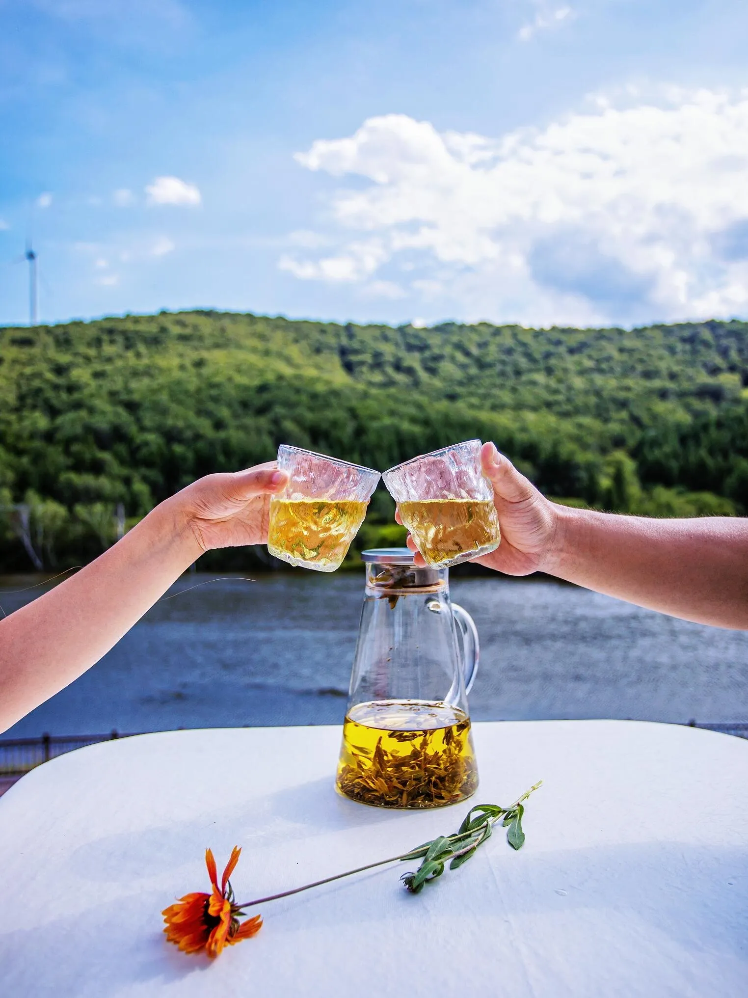 值得一提的是这里的采茶体验。就在天镜湖对面的金露梅园,找老板拿个篮子就能去采茶了,很有趣!采完的茶可以让老板帮忙炒,也可以直接买成品,50元一罐,价格亲民。甜甜的花草茶,口感不错。