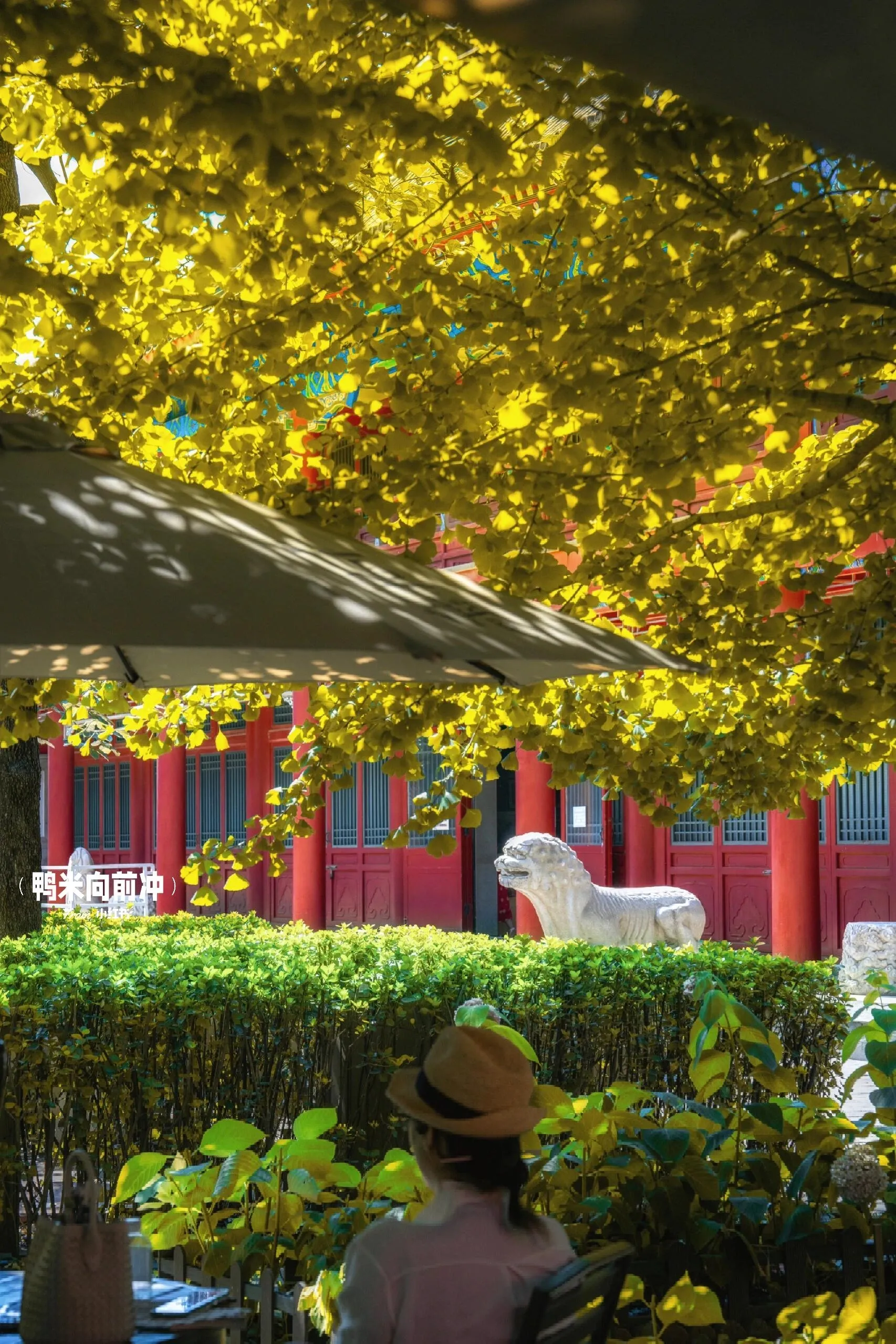 博物馆内还有文创店可以盖章,以及一个咖啡馆,你可以坐在银杏树下悠闲地品茶。斑驳的红墙,壮观神秘的金刚宝座塔,金黄的银杏叶,湛蓝的天空,构成了一幅美丽的画卷,值得你在此消磨整个午后。