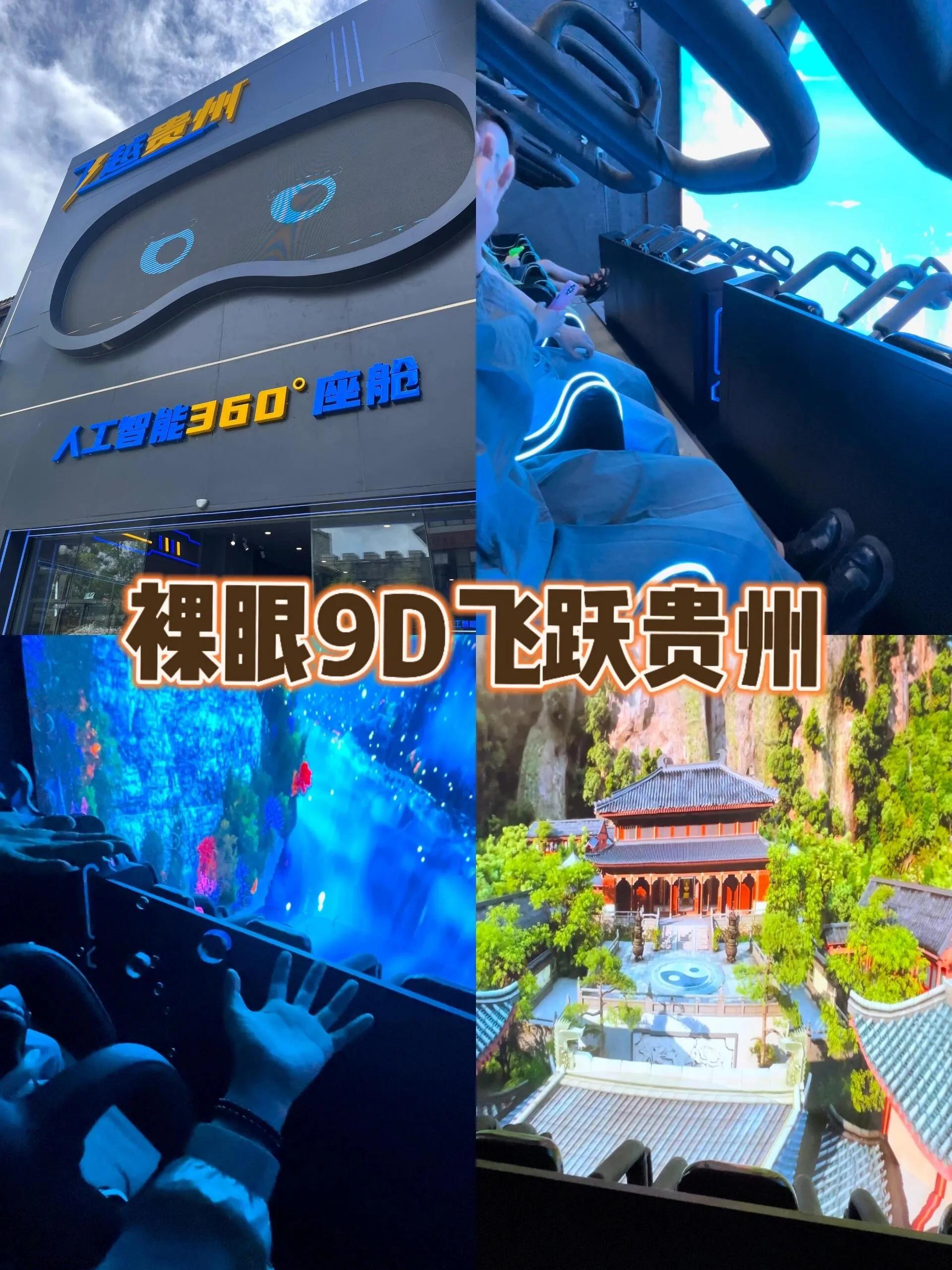 值得一提的是,古镇内的裸眼9D飞跃贵州体验非常有趣。它提供多个场景选择,座椅会随场景变化而移动,还有雨雪等特效,带领游客穿越贵州山水,仿佛置身于电影情节中。