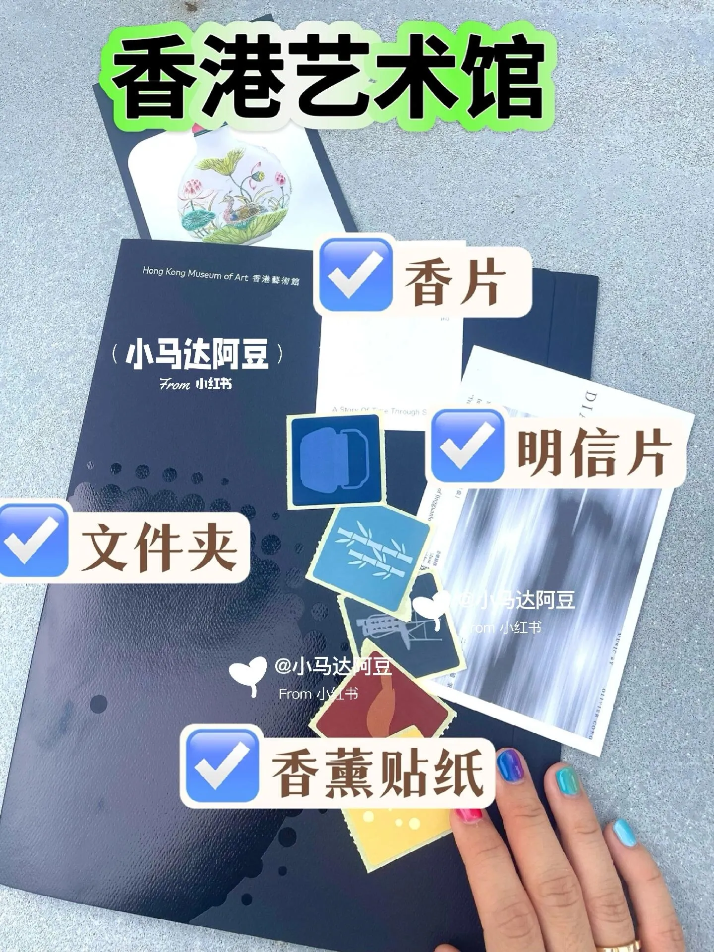 可领取香片、文件夹和明信片。
