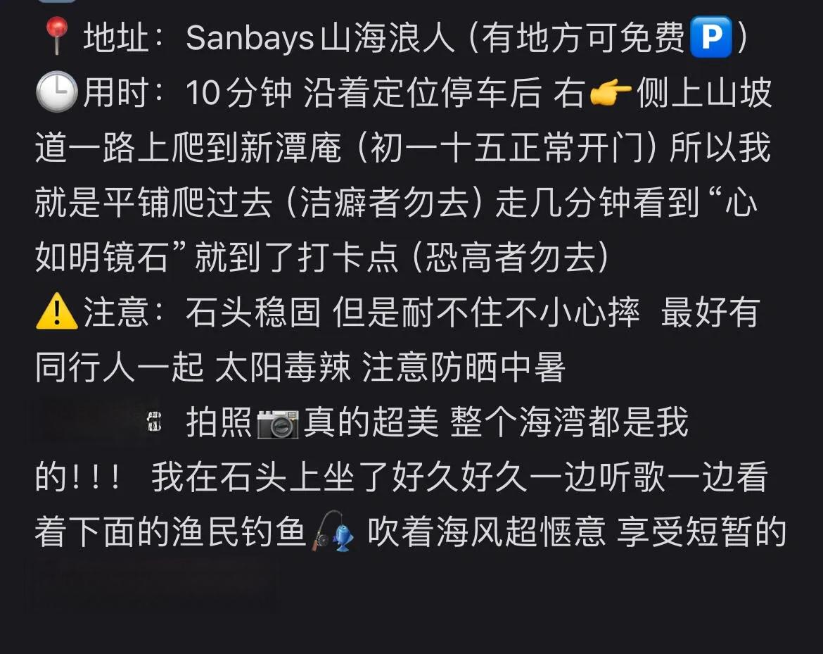 首站来到 山海浪人 ,这里有两个值得一拍的地方:庙里的机位和民宿对面的景观。接着前往神州半岛,可以远眺灯塔,感受椰林公路的热带风情。如果时间充裕, DEDECO 也是个不错的选择,不过需注意消费标准(泳池内低消800,泳池外低消300)。