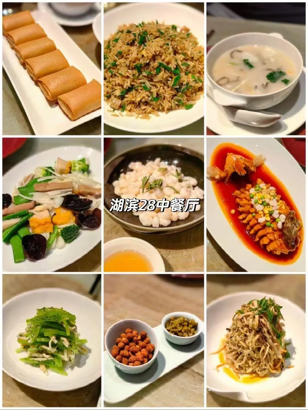 酒店的中餐厅“湖滨28”颇具名气 ,菜品口味清爽,不失为品尝杭帮菜的好去处。用餐环境优雅,服务态度良好。此外, 酒店大厅每天下午都有现场钢琴演奏 ,为宾客营造优雅氛围,这在当前人力资源紧缺的情况下实属难得。