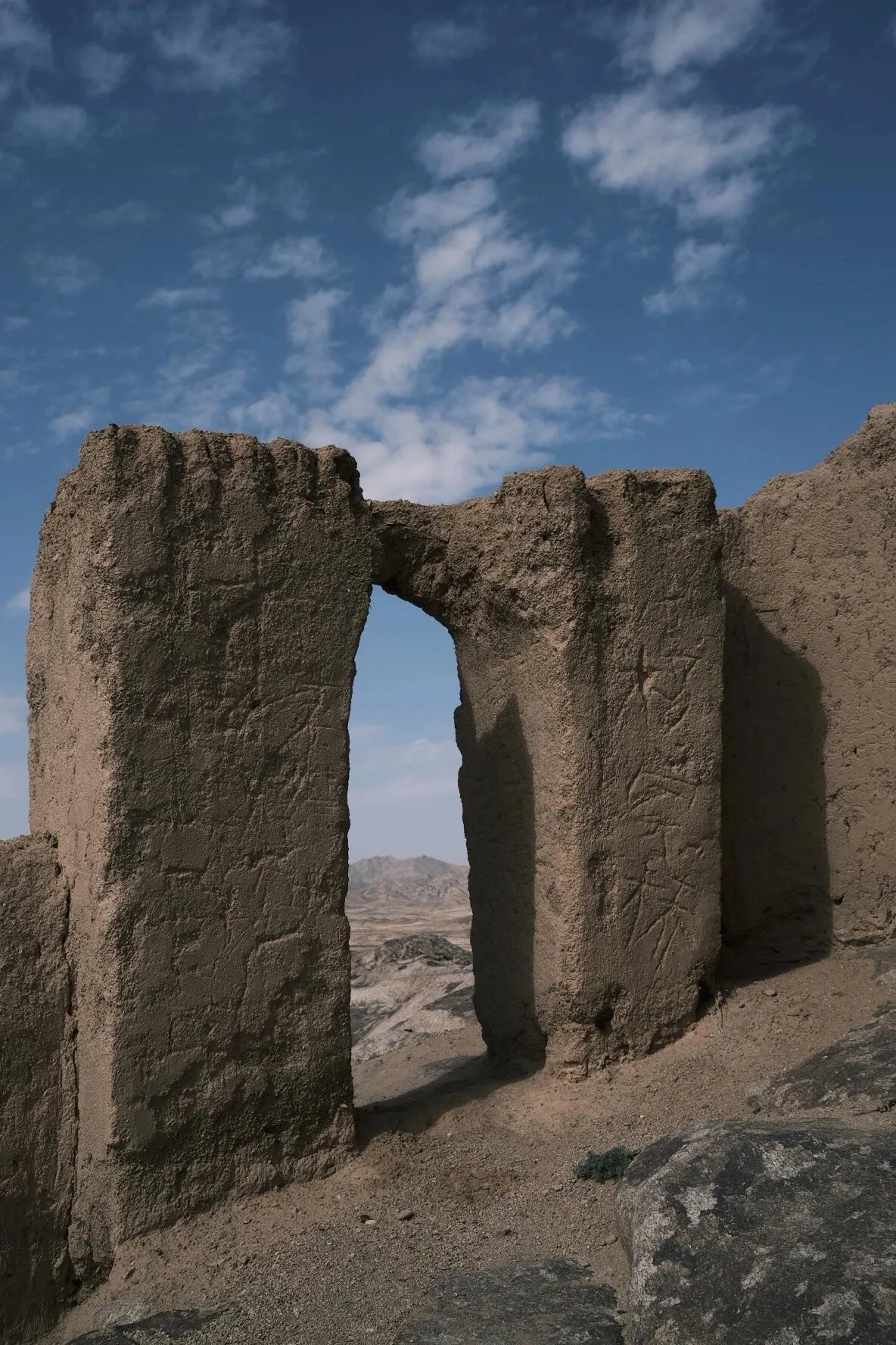 骑行88公里的乡间破道,抵达了明水汉代军事遗址。 这里没有任何保护措施,游客可以随意攀爬触摸。即便有人像酒井南那样推倒汉墙,恐怕也无人过问。虽然想带走一块土墙和芨芨草作为纪念,最终还是作罢。回想起在敦煌骑行时路旁的烽燧,如今已不复存在,不禁让人担心这里的遗迹还能保存多久。轻抚这些遗迹,仿佛穿越了2000年的时光,这份感受已经足够珍贵。