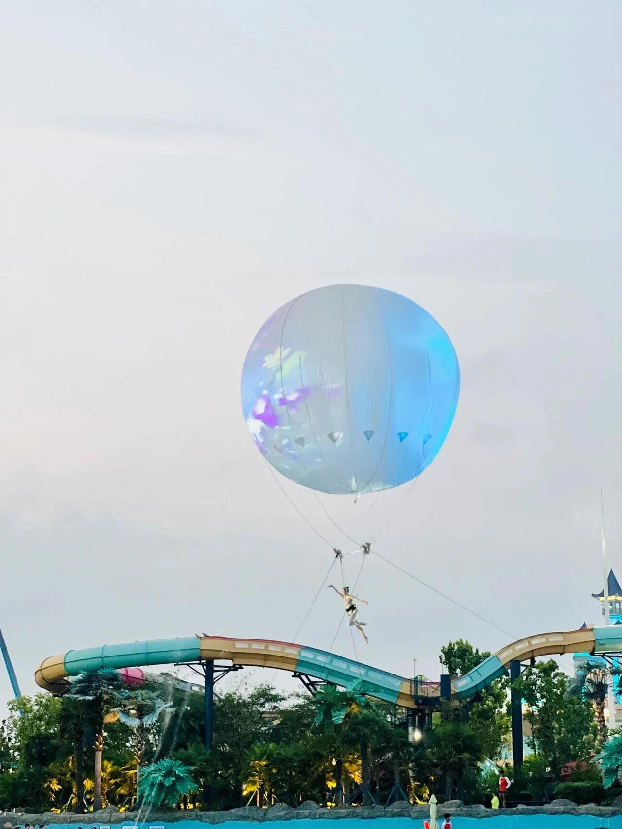 晚上的水乐园氛围感绝了!水上飞人表演近距离观看,令人惊叹。蓝色的月亮缓缓升起,配合着仙女般的舞姿,宛如嫦娥奔月,美得让人惊艳。精彩的开场表演后,伴随着high到爆的音乐,一场boom电音节派对随即开启。海浪一层层涌来,游客们欢呼雀跃,气氛瞬间被点燃。
