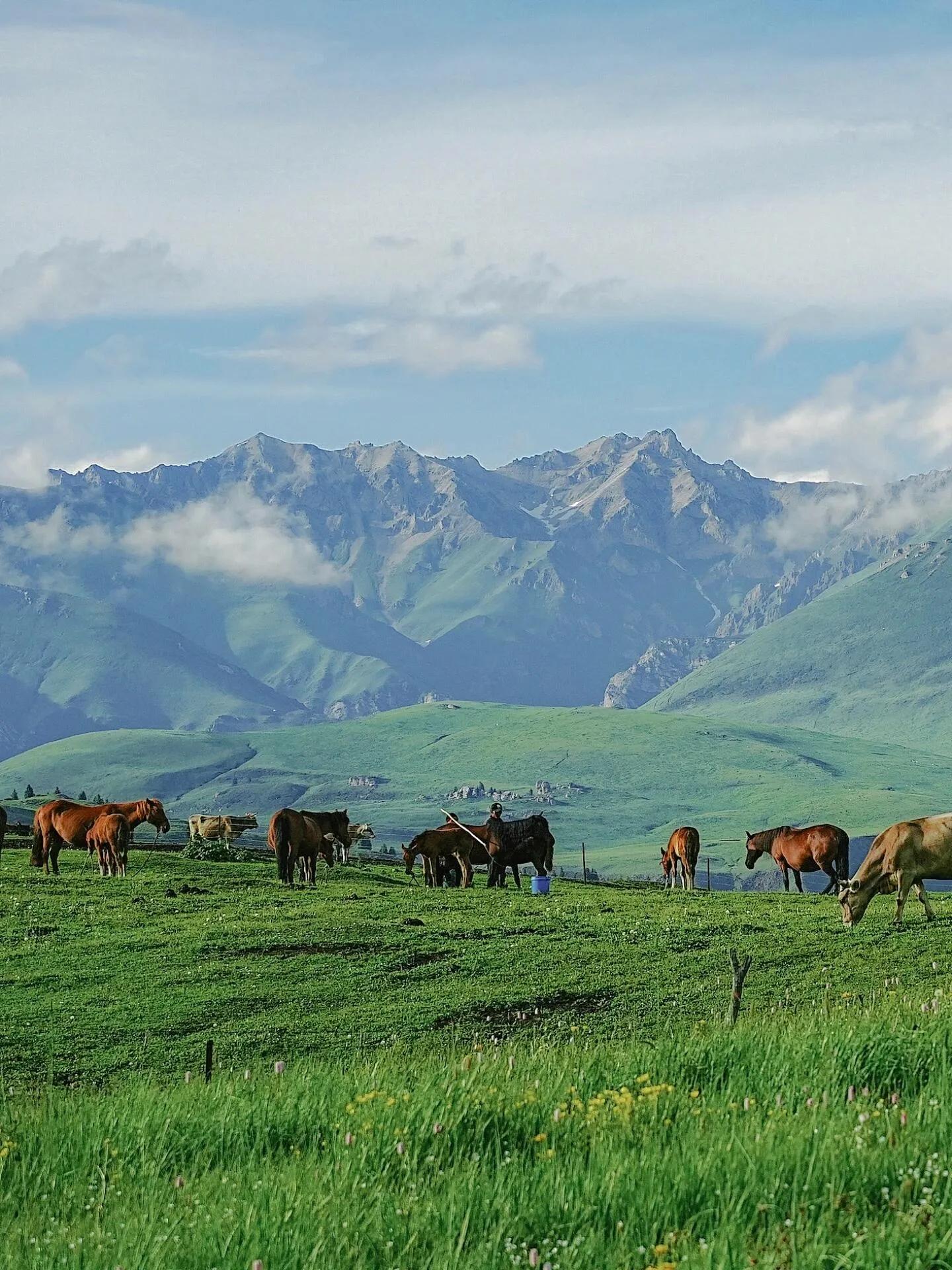 这是我第10多次去新疆了,却依然抑制不住对它的向往、热爱和奔赴之心。每年的6-7月是新疆最美的时候,一望无际的草原花海,连绵不断的雪山森林,仿佛置身于电影《海蒂和爷爷》的画面中。