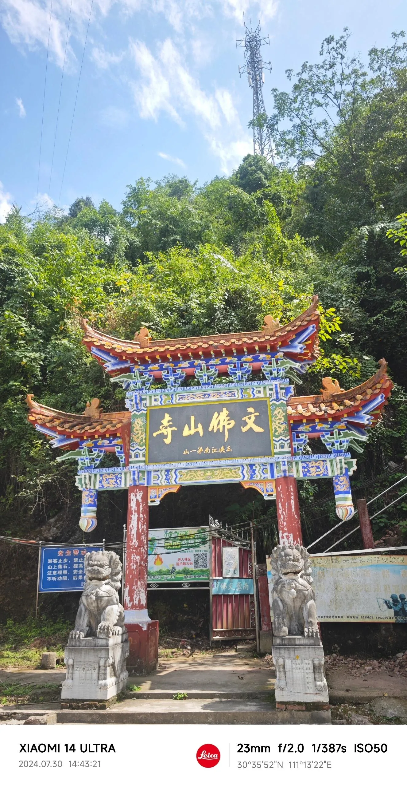 文佛山是联棚乡境内最知名的游览地点。 山上的文佛山寺据说可追溯至明代,虽然现存寺院规模不大,也不作为景区开放,部分建筑已经破败。但新修的塔楼十分漂亮,虽然不开放参观,却是一个不错的拍照打卡地点。上山路上还能看到山泉,泉水凉爽清冽。一些山岩用木棍支撑的奇特景象,实际上是用来做崩塌或滑坡的警示器,体现了当地人民的智慧。