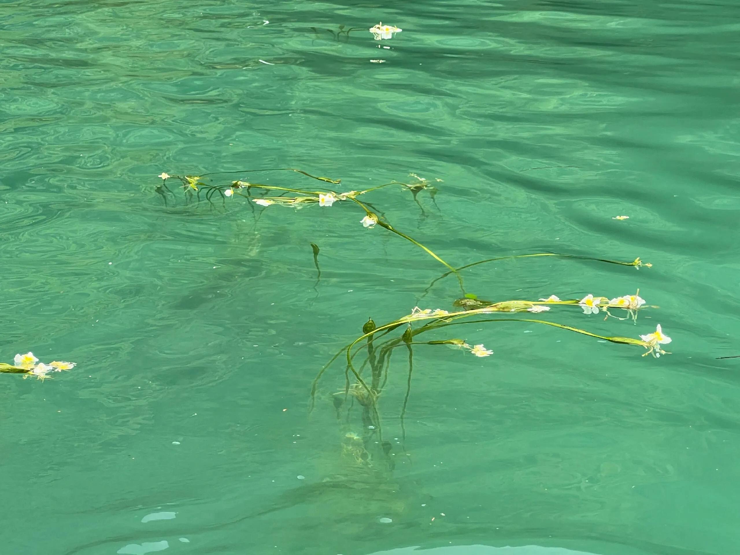 最后去 海菜花观赏基地 。这里被称为“一条会开花的河”。基地跟桃花水母天窗是反方向,要回到都安县城,可坐都安1路公交或者打车前往。目前涨水没有什么海菜花,但是水很清,适合游泳或者漂流,注意水流比较急。