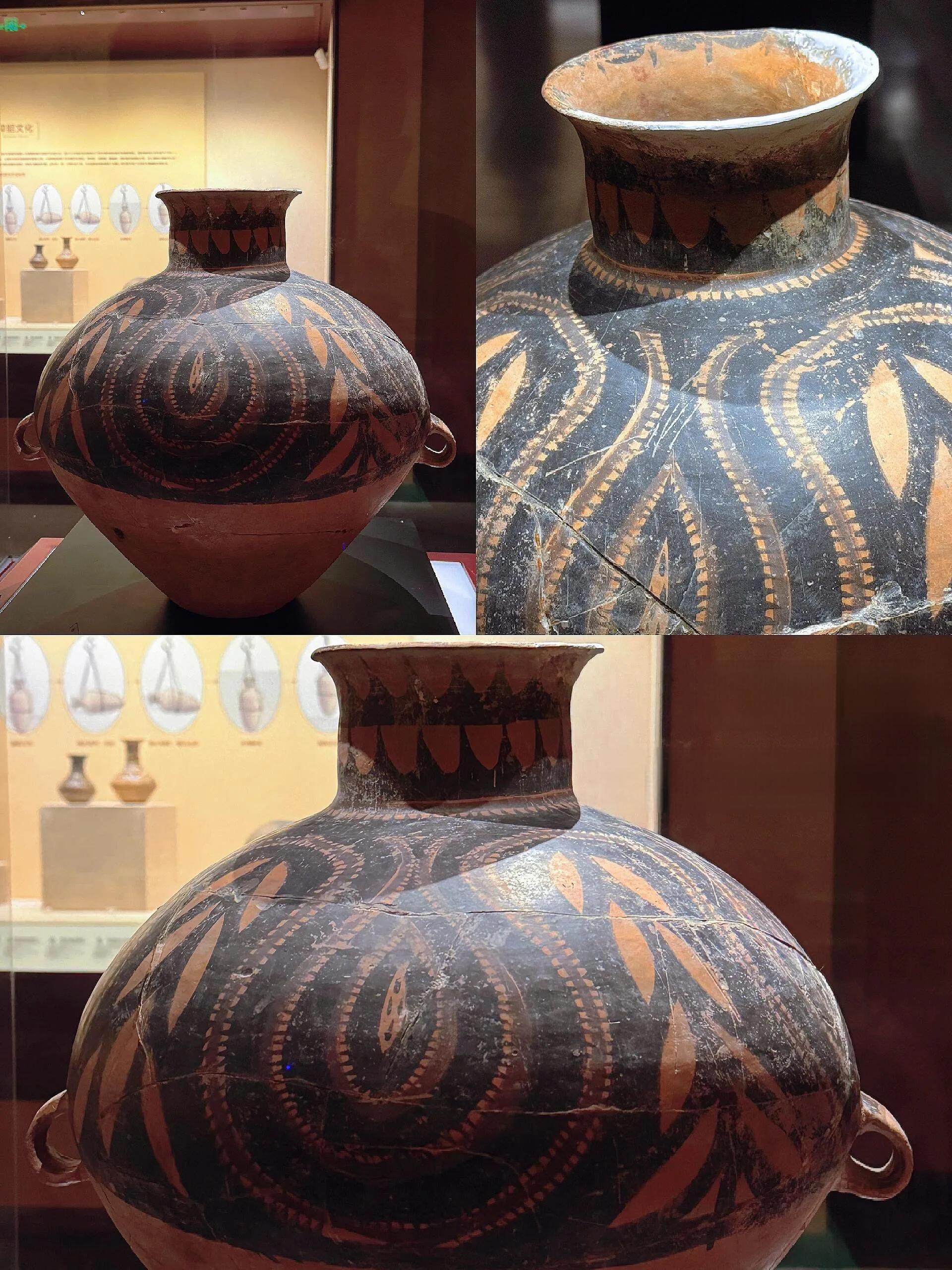 豆荚纹双耳陶罐:这件陶罐的亮点在于其表面纹饰的绘画和色彩工艺,展现了古代工匠的精湛技艺。